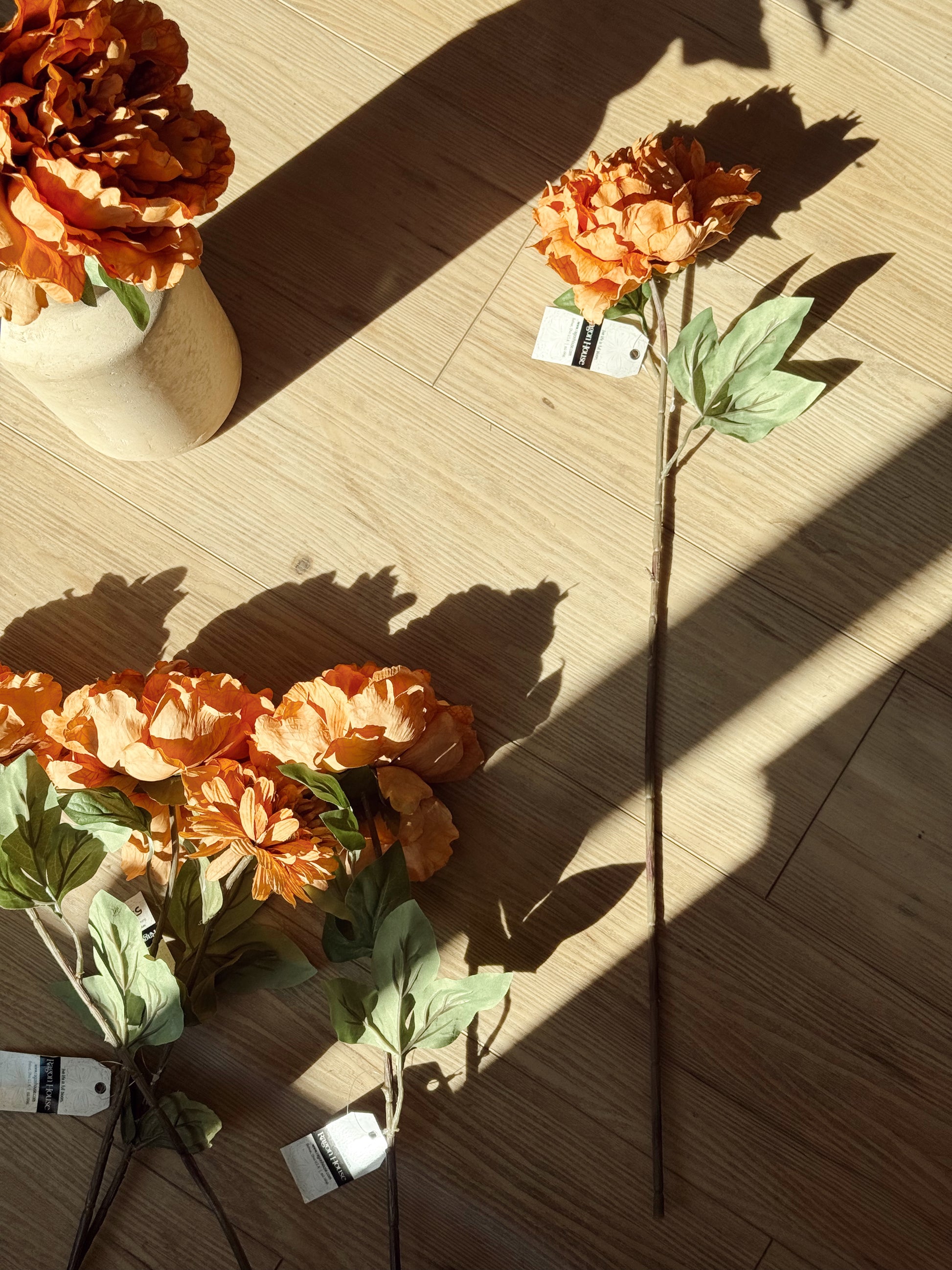 Autumn Florals Dusty Orange Peony Stem – 27”