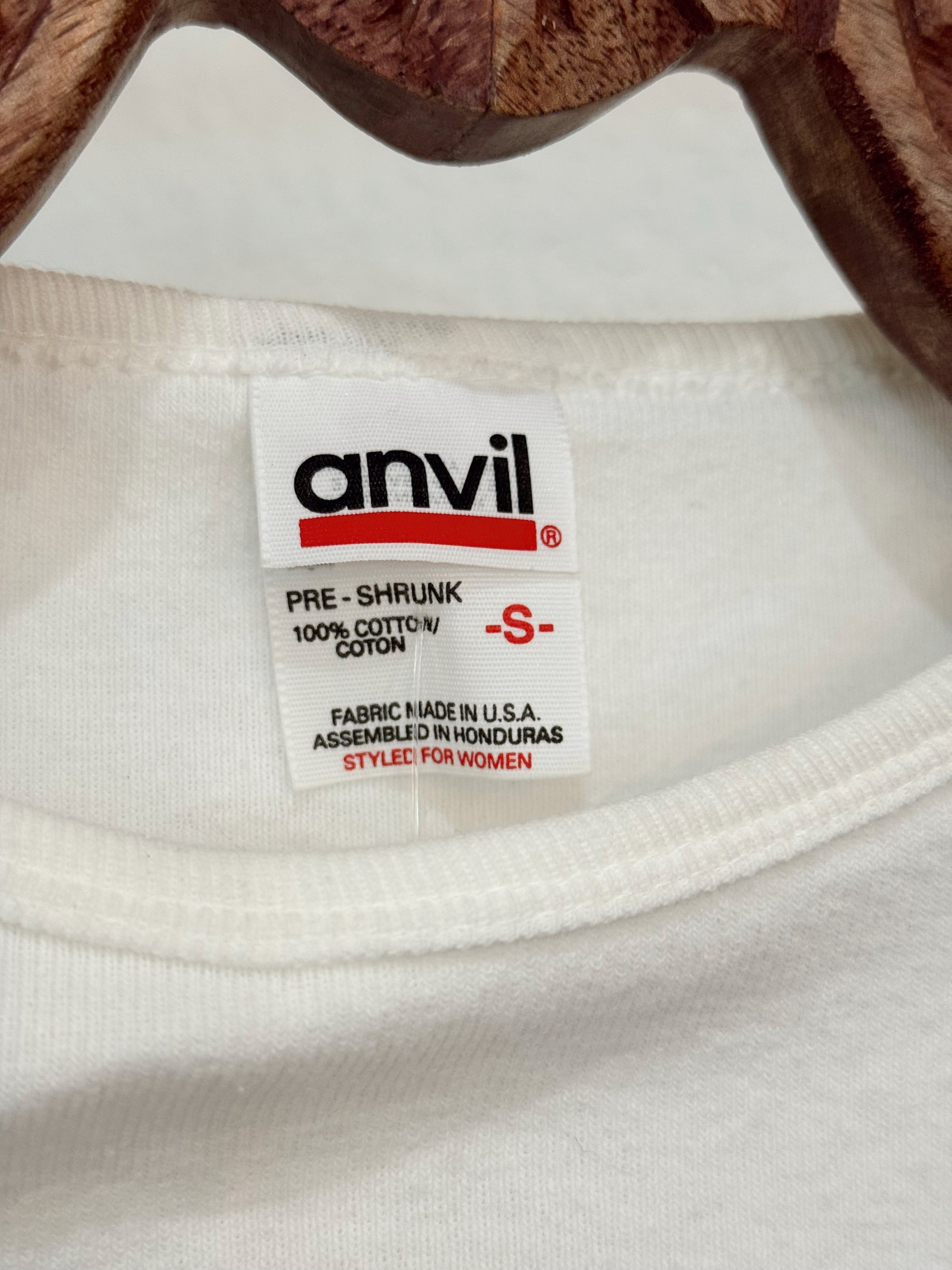 Yeehaw meets vintage vibes in this cropped white tee featuring bold “Cowboy Country” lettering. With its soft feel, slightly worn-in look, and effortless fit, this size small top brings just the right amount of western flair to your wardrobe.