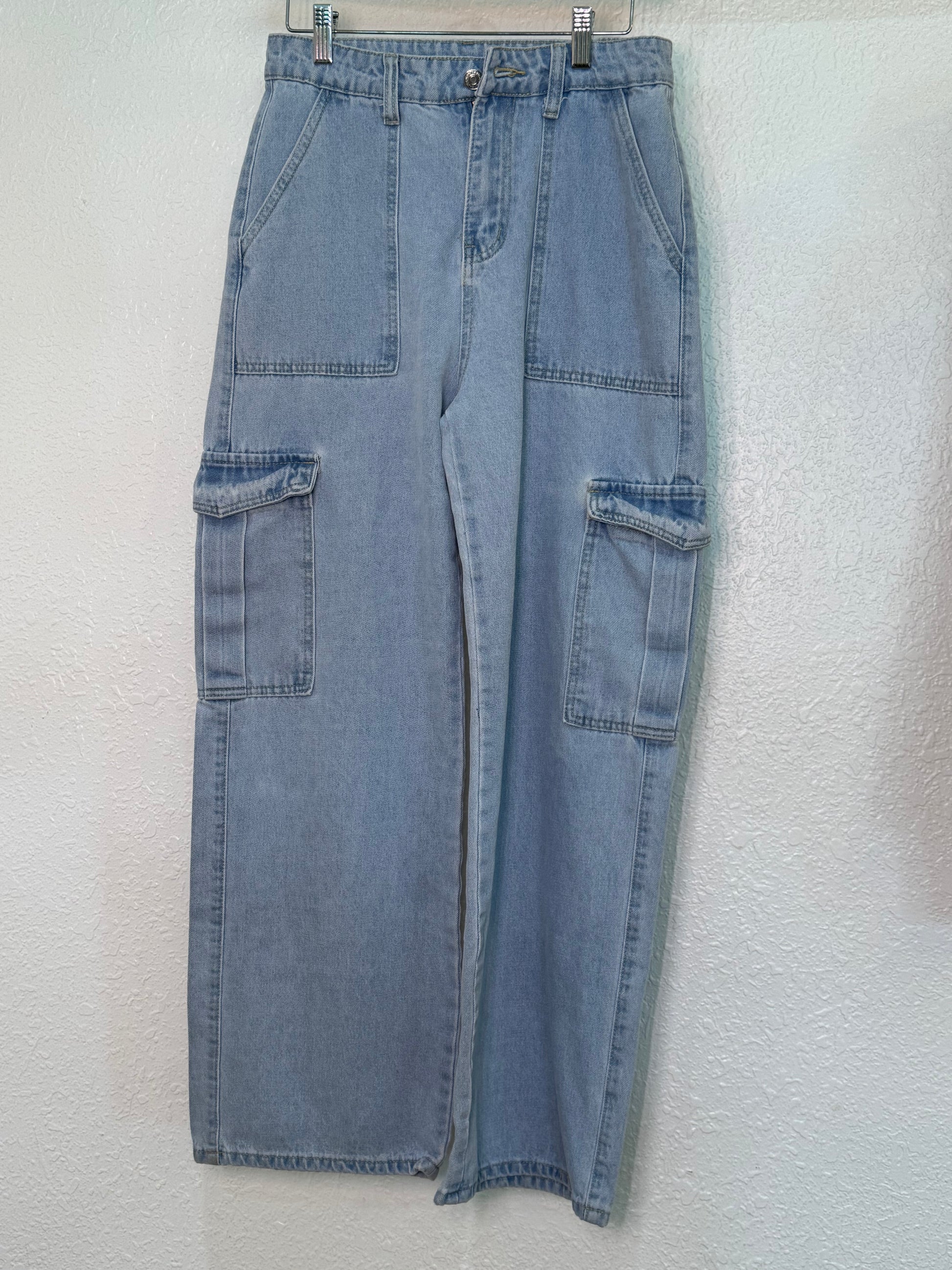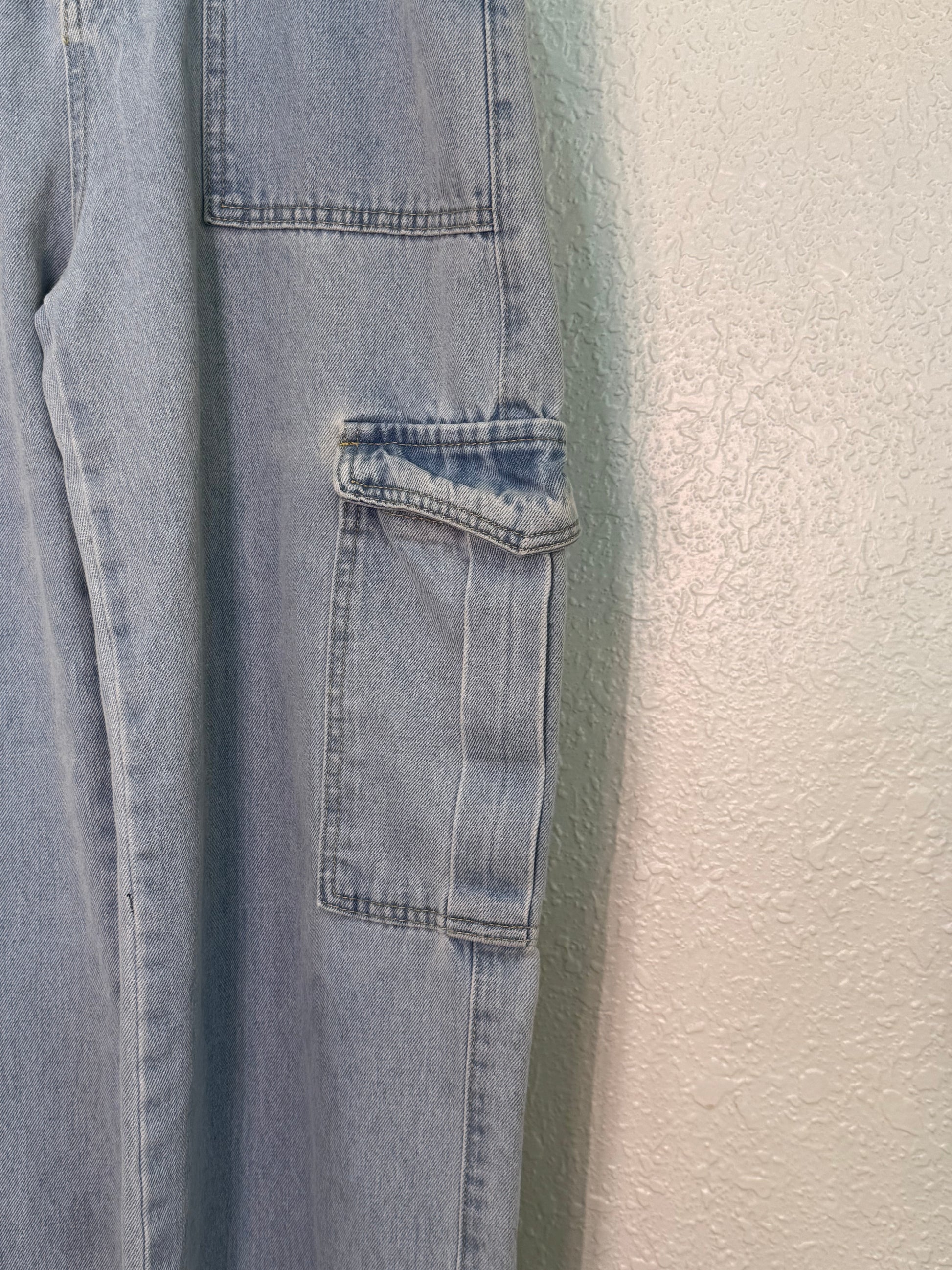 Get the best of both worlds with these relaxed denim cargo pants—equal parts utility and trend. Featuring multiple pockets, a flattering mid-rise fit, and a soft, broken-in denim wash, these cargos are perfect for elevating your casual wardrobe.