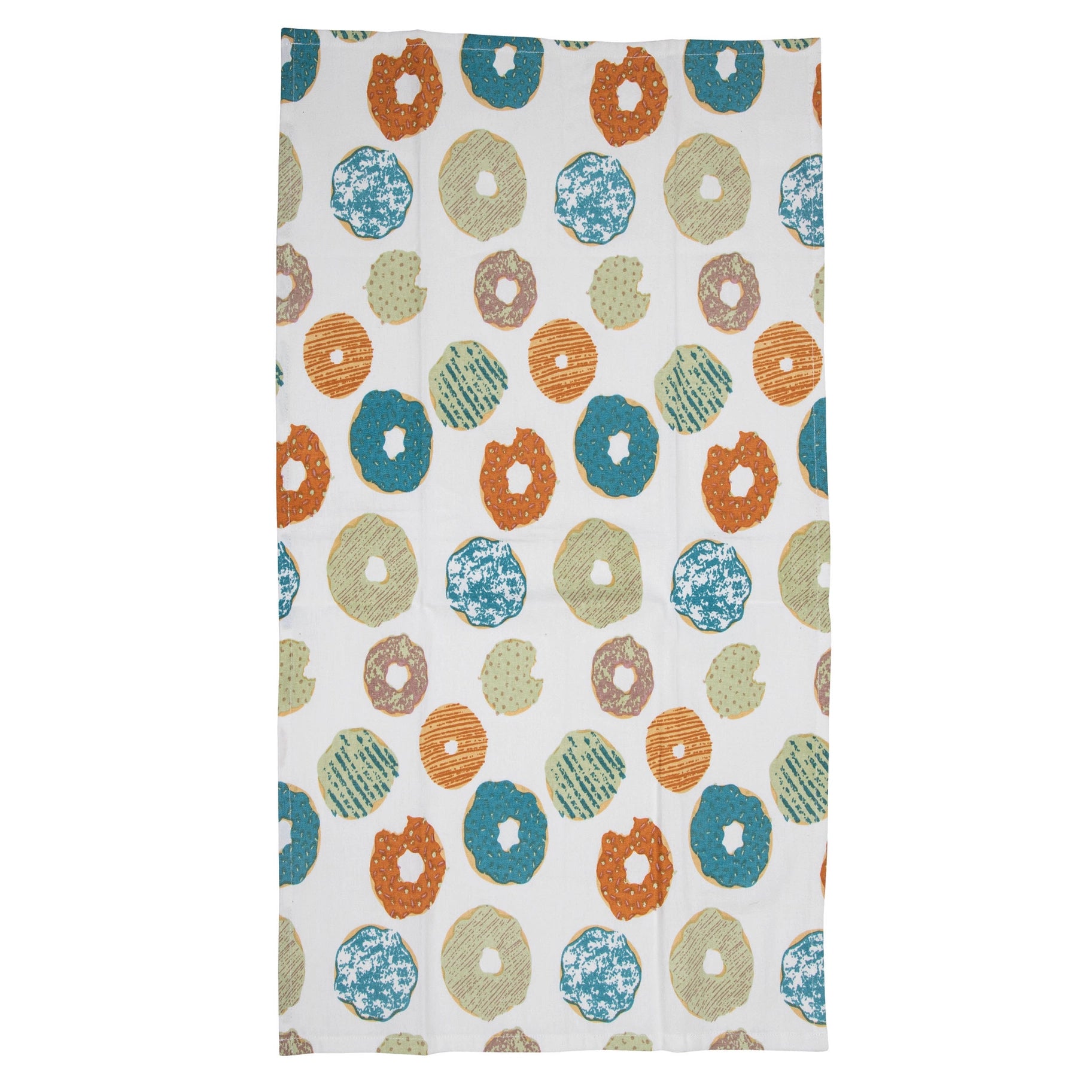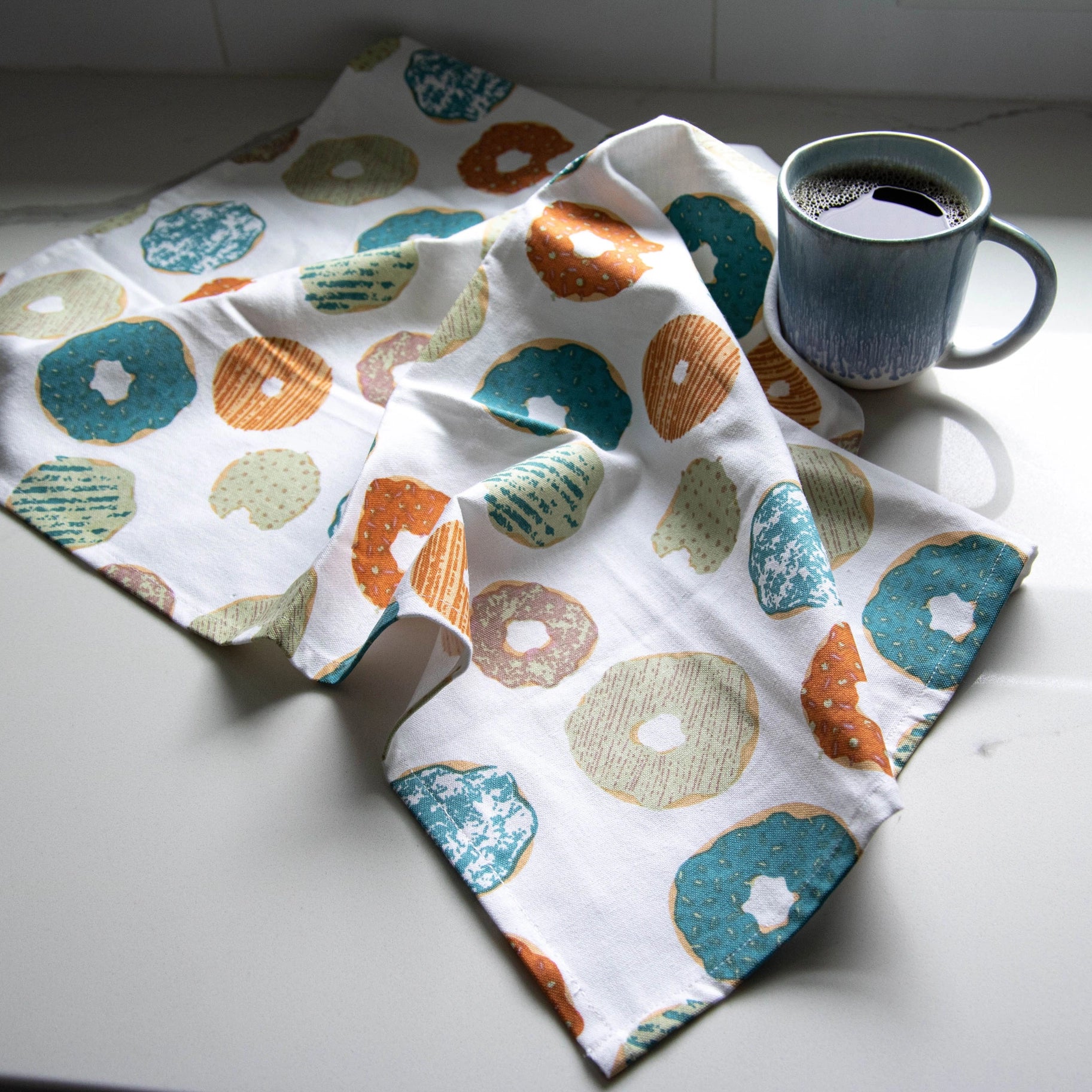 This sweet donut printed tea towel features screen printed colorful donuts across the entire towel. Its modern colors and design are sure to bring joy and conversation to the kitchen. -Both decorative and functional dish towel uses.