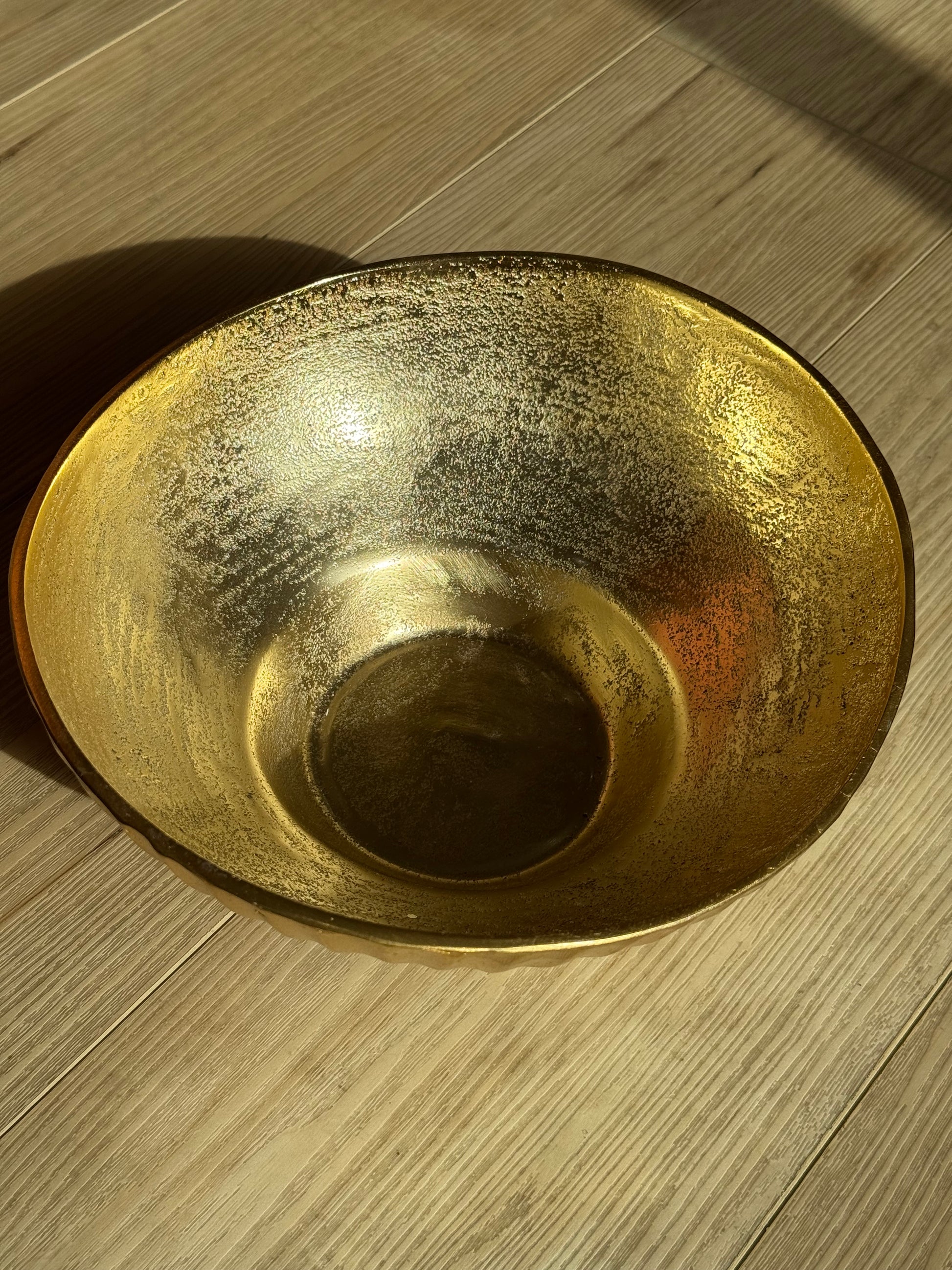 Gold Fluted Bowl – 10” Round x 4.5” Tall