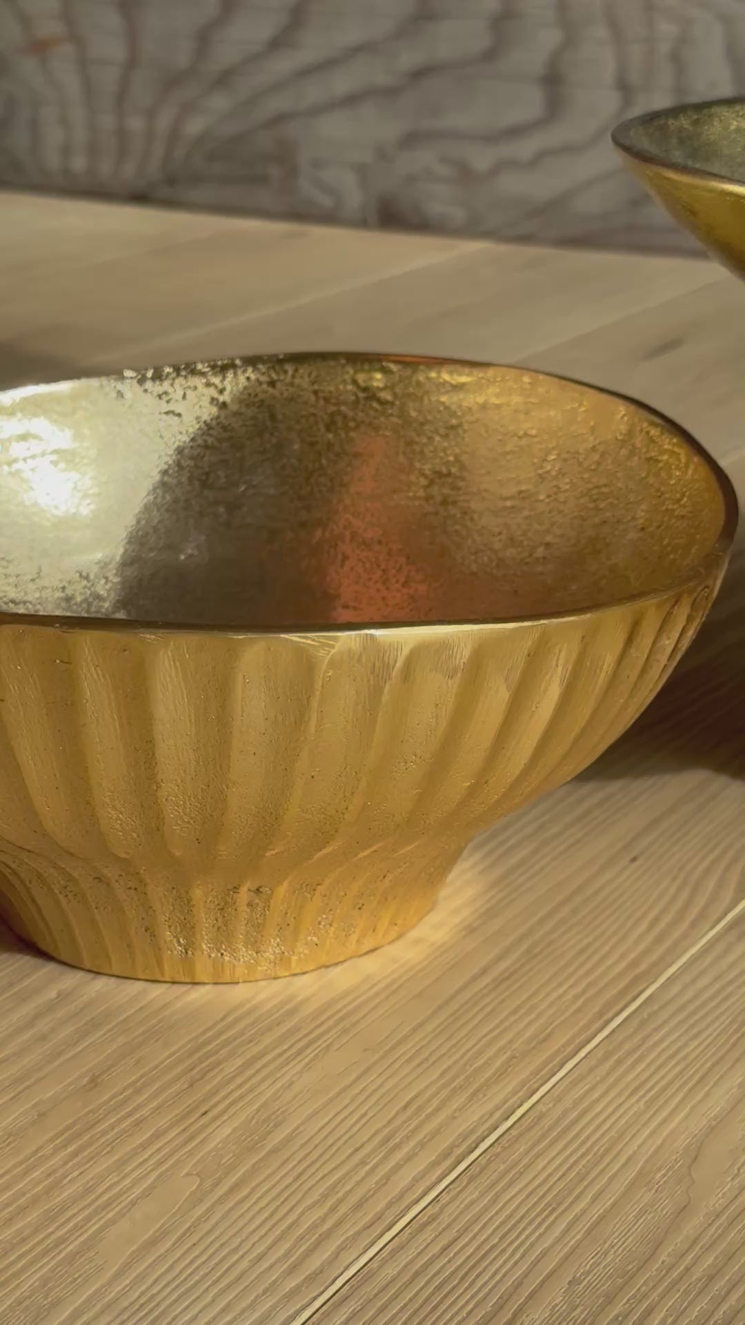 This gold fluted bowl brings a touch of timeless elegance to any space. Measuring 10” in diameter and 4.5” tall, it features a softly textured metallic finish and gently scalloped sides that create a classic yet modern look. Perfect for serving, displaying fruit, or styling as a decorative accent, its warm golden hue makes it a standout piece for dining tables, coffee tables, or shelving displays.