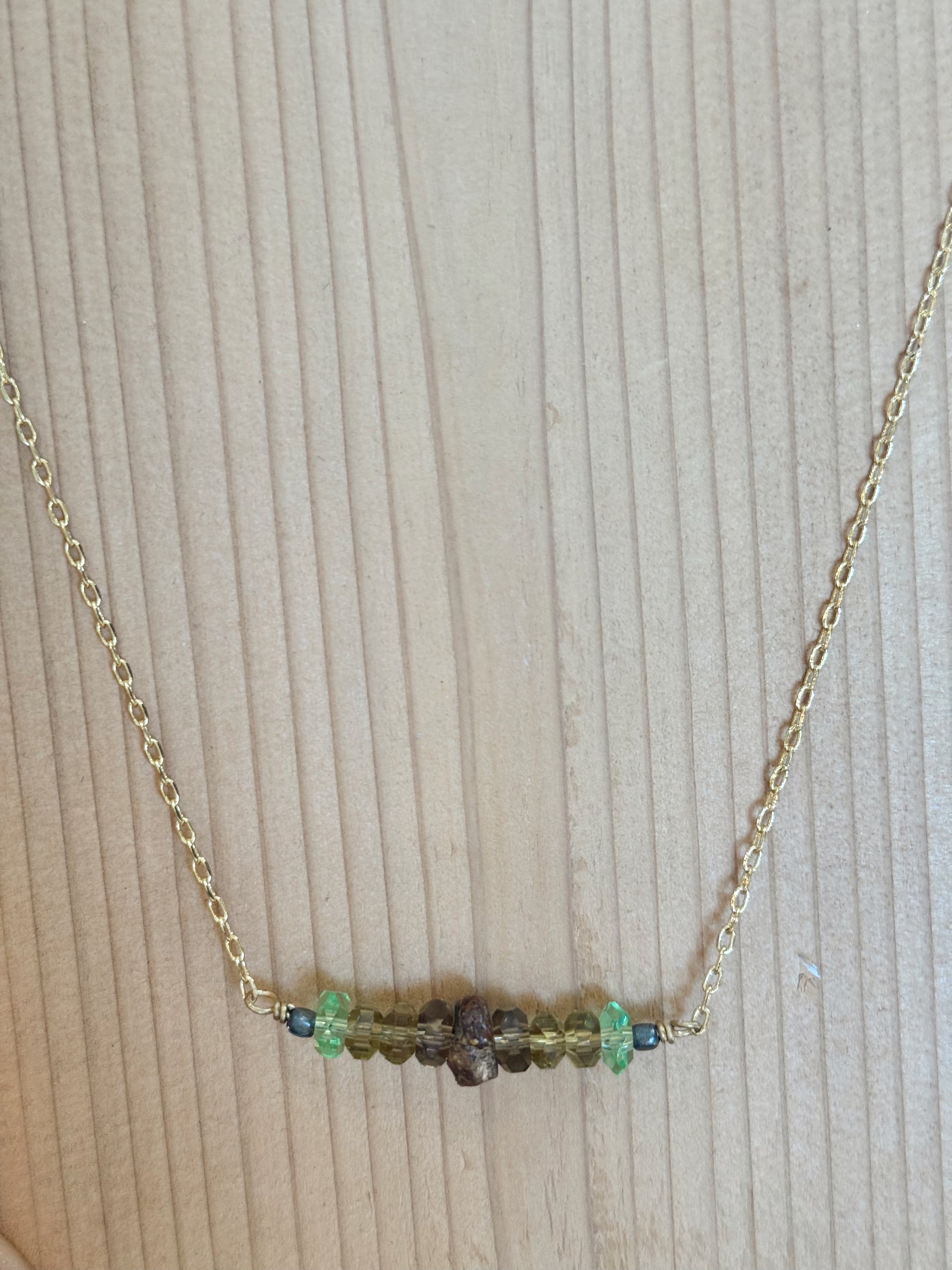 Golden Earth Jasper & Crystal Bar Necklace – by Designer Sarah H Designs
