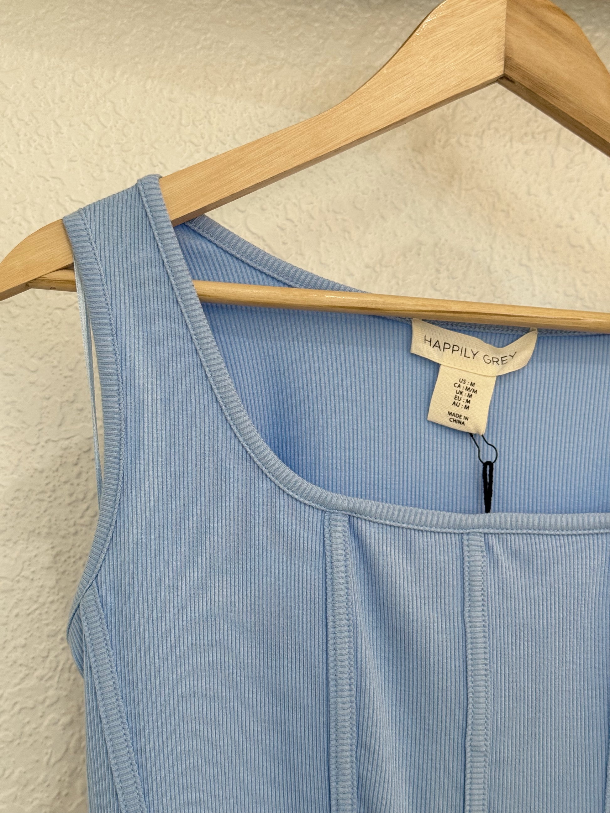 Happily Grey Sky Blue Ribbed Tank – Size M