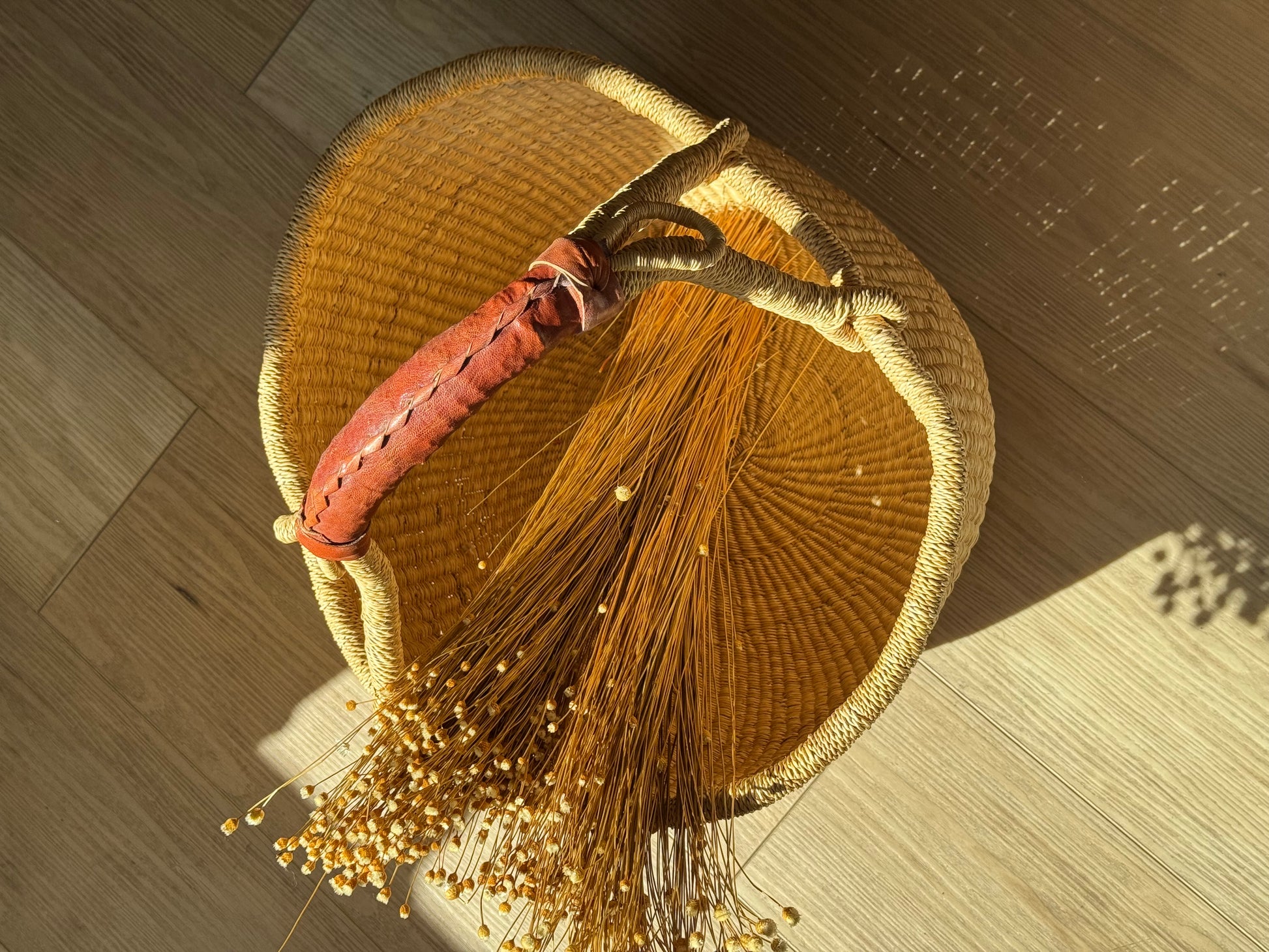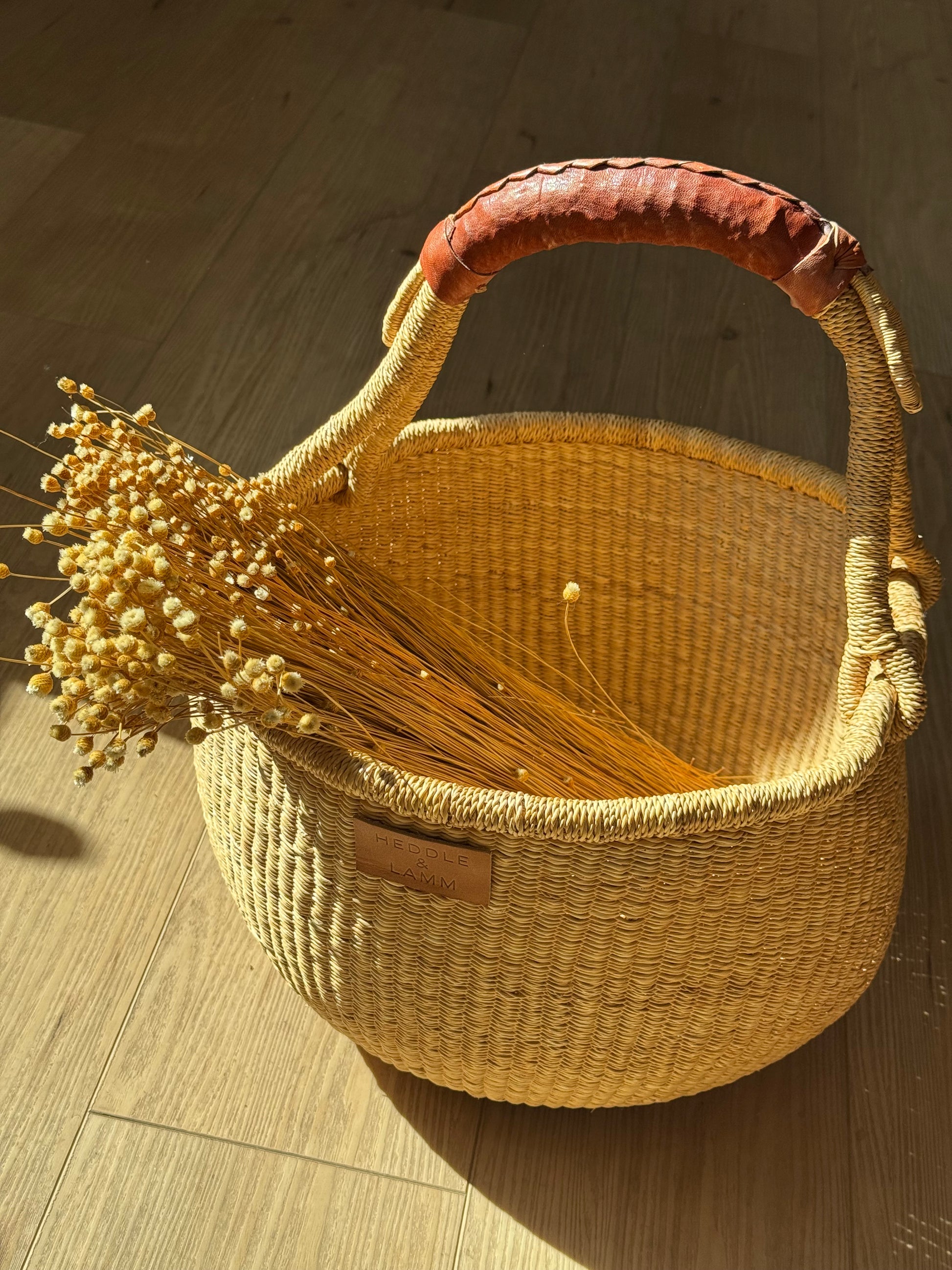 Heddle & Lamm Kandiga Bolga Basket – Reddish Brown Leather Handle