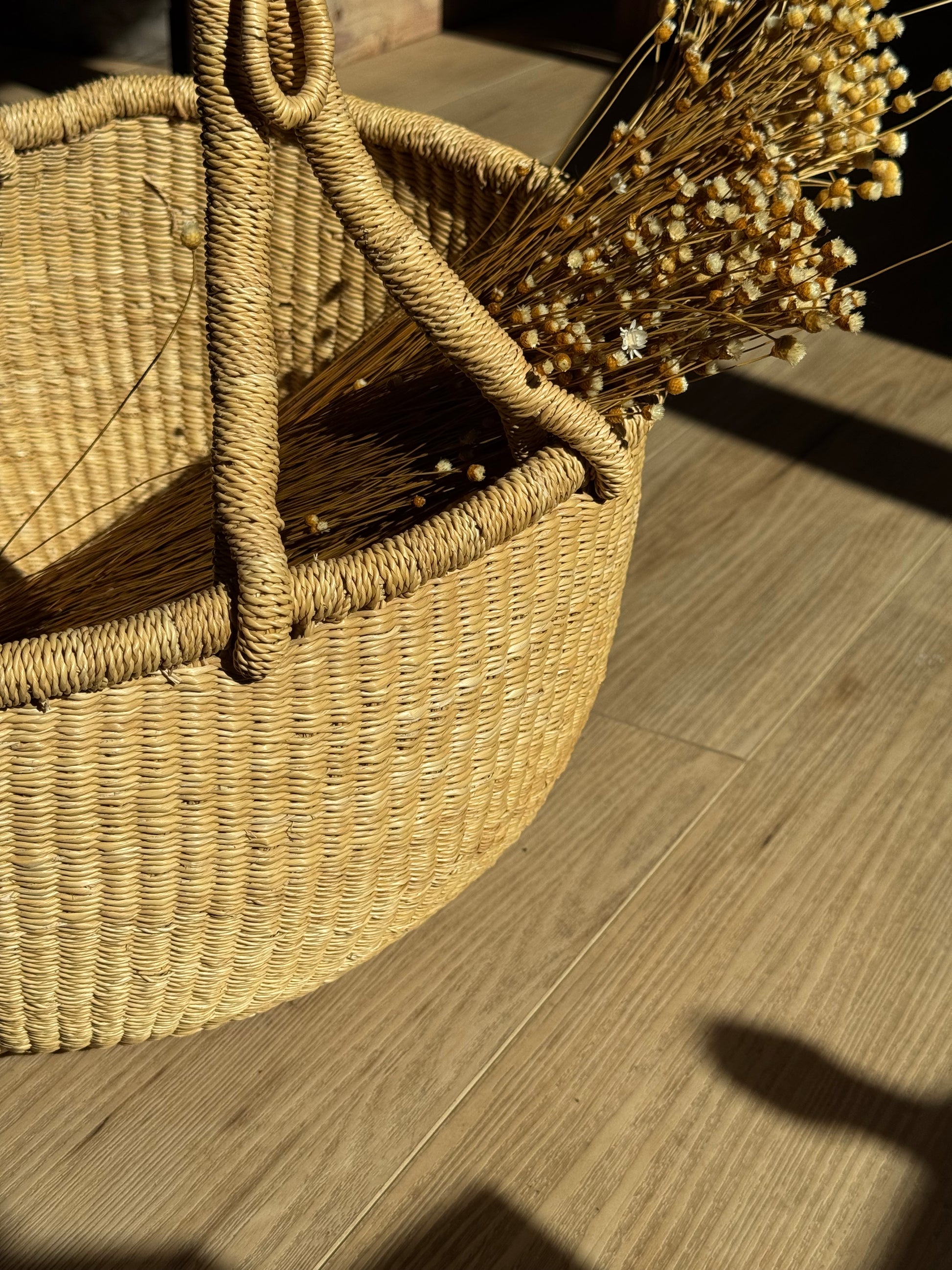 Every purchase directly supports the farmers and weavers who create these baskets, preserving traditional techniques and providing a sustainable livelihood. Perfect for market runs, stylish storage, or as a decorative accent, no two baskets are exactly alike.