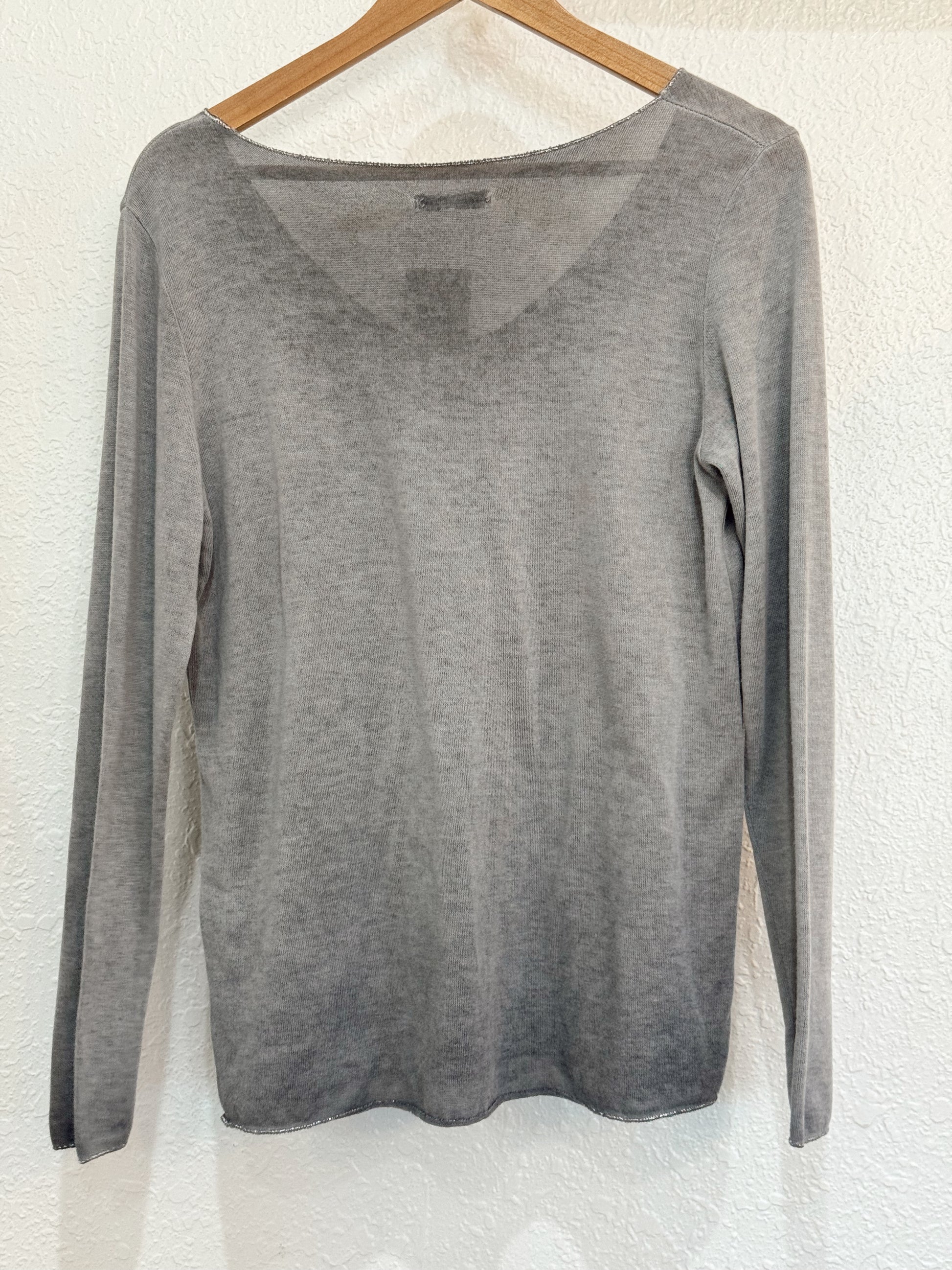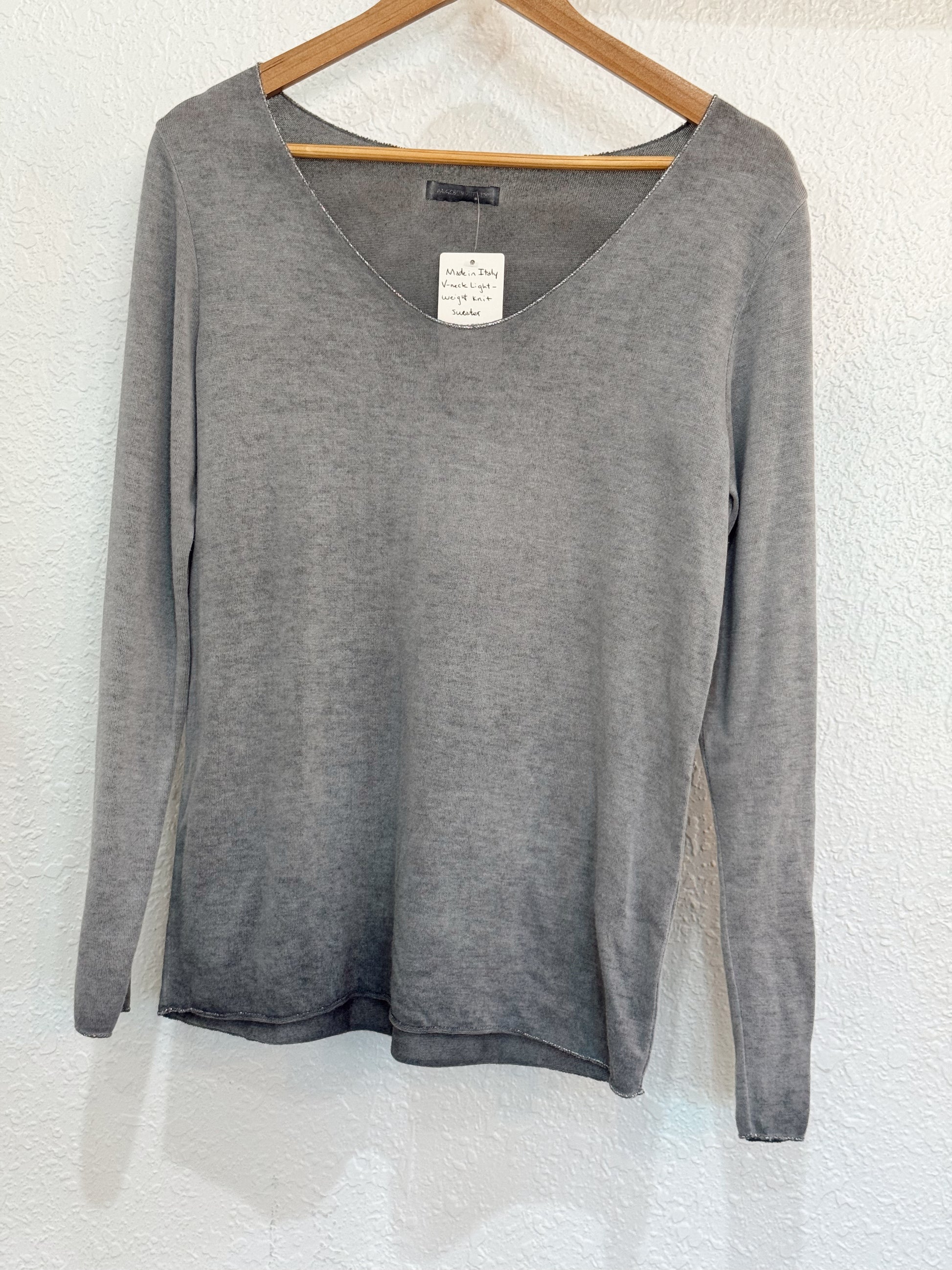 Made in Italy Grey V-Neck Lightweight Sweater – M/L