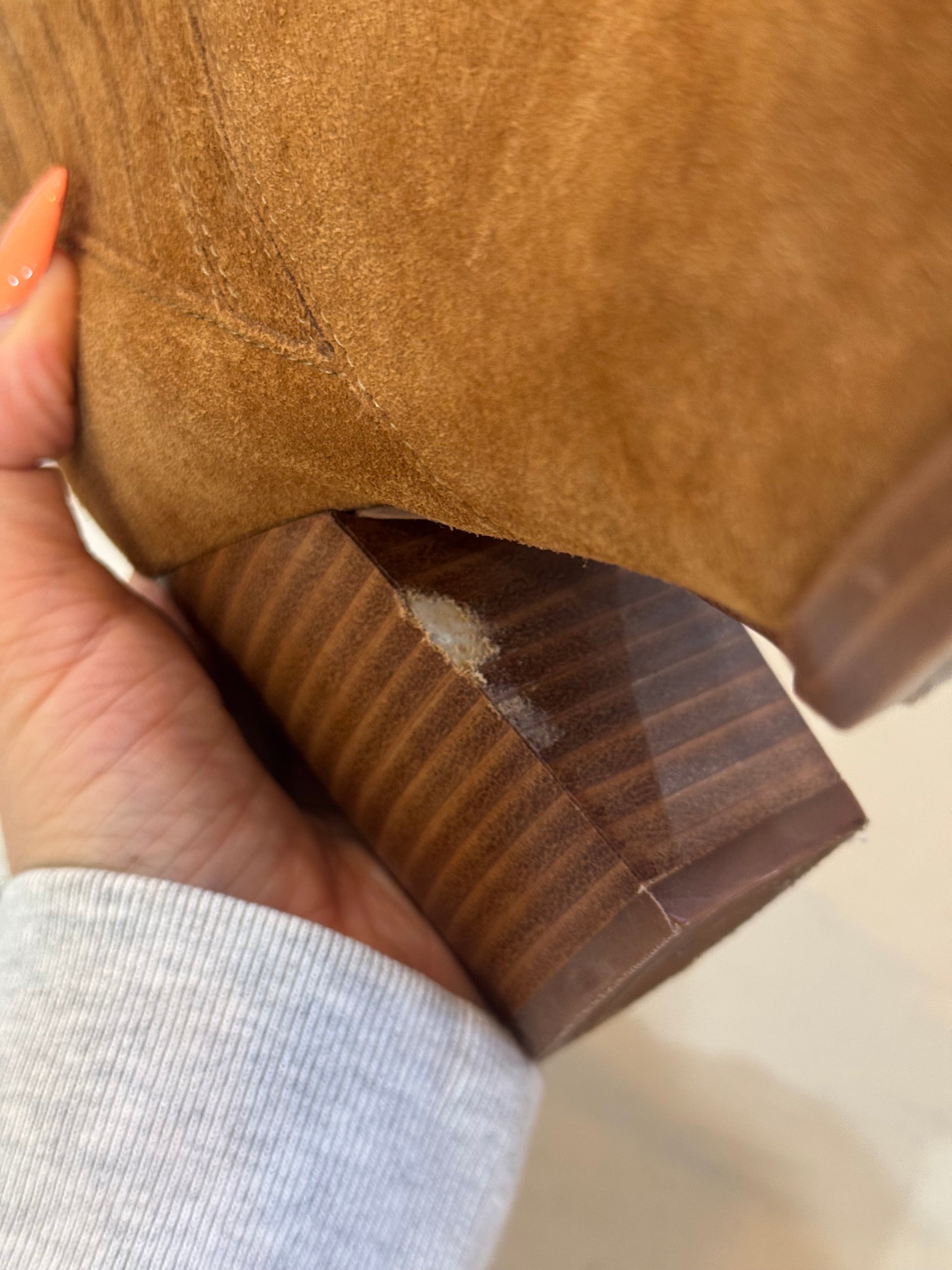 - Suede upper with stacked block heel