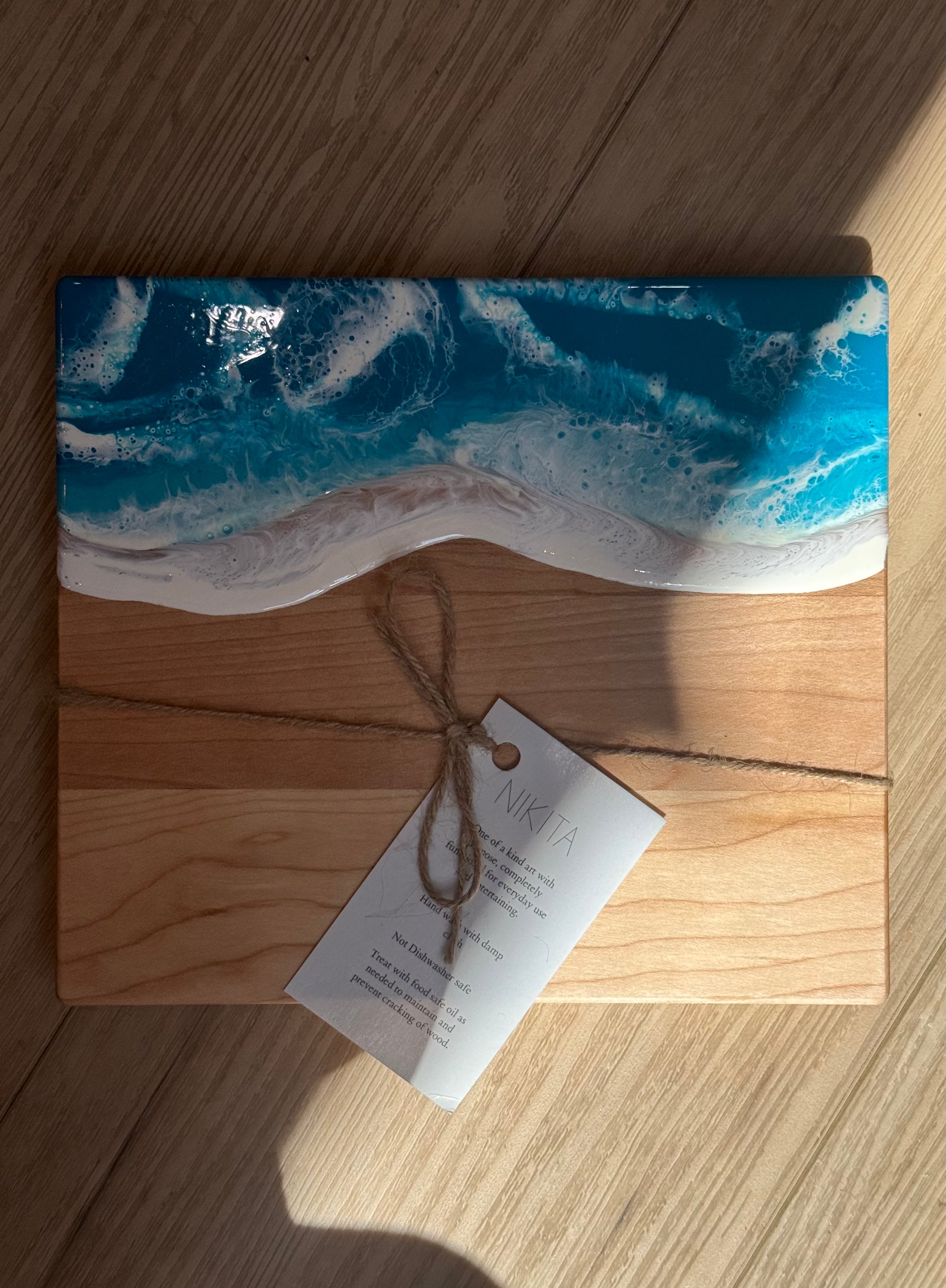 Elevate your entertaining with the Nikita Cheese Board—a stunning blend of natural maple wood and hand-poured resin. Each board features a one-of-a-kind resin design, making every piece as unique as the gatherings it’s a part of. Compact and stylish, it’s perfect for serving cheeses, charcuterie, or small bites with a touch of artisan flair.