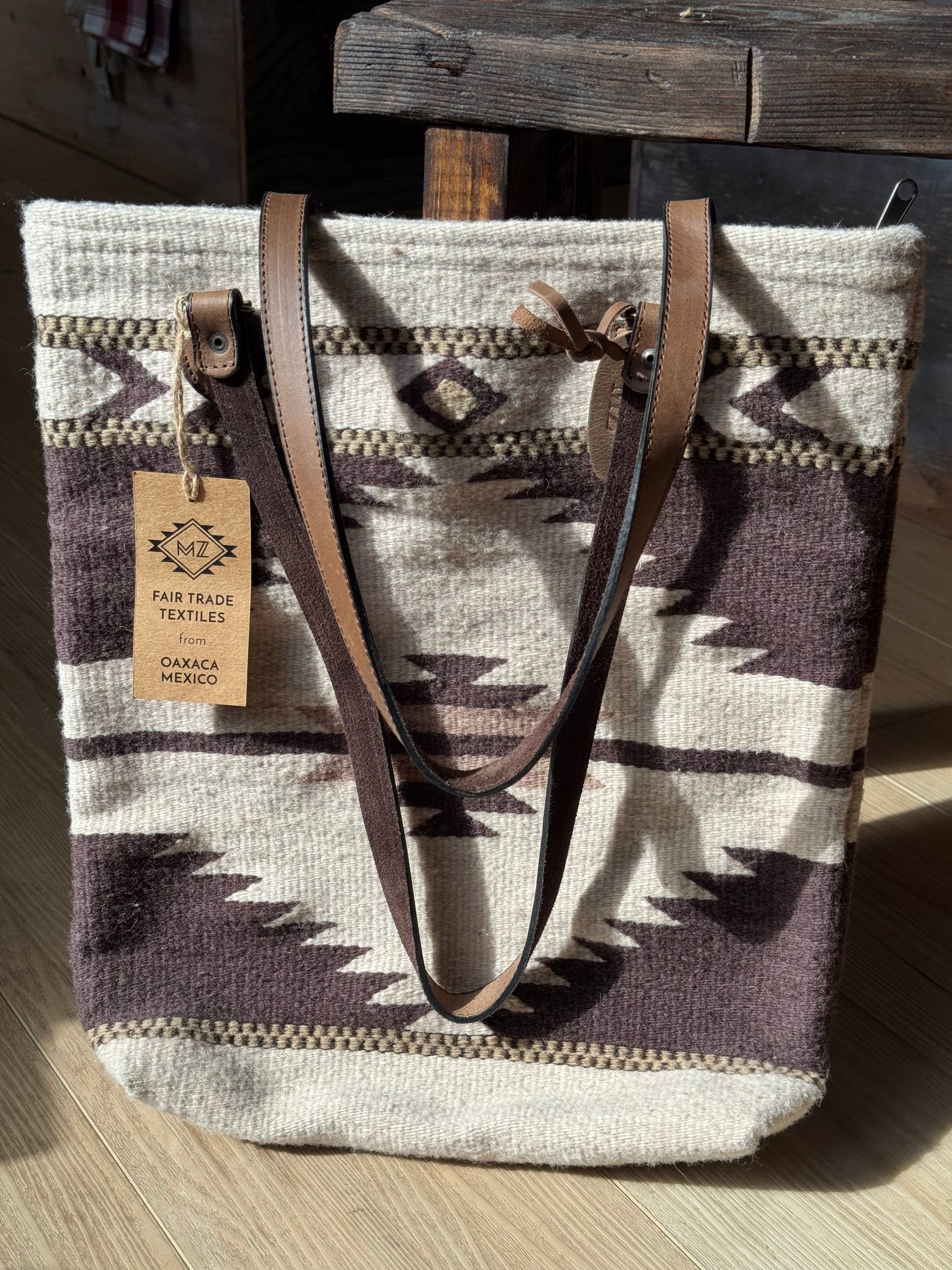 Lovingly handwoven and handcrafted in Mexico, the Tierra Tote is built to last and made to carry your daily essentials with ease. The genuine brown leather straps offer durability and comfort, while the spacious interior makes it ideal for everyday use or weekend adventures.