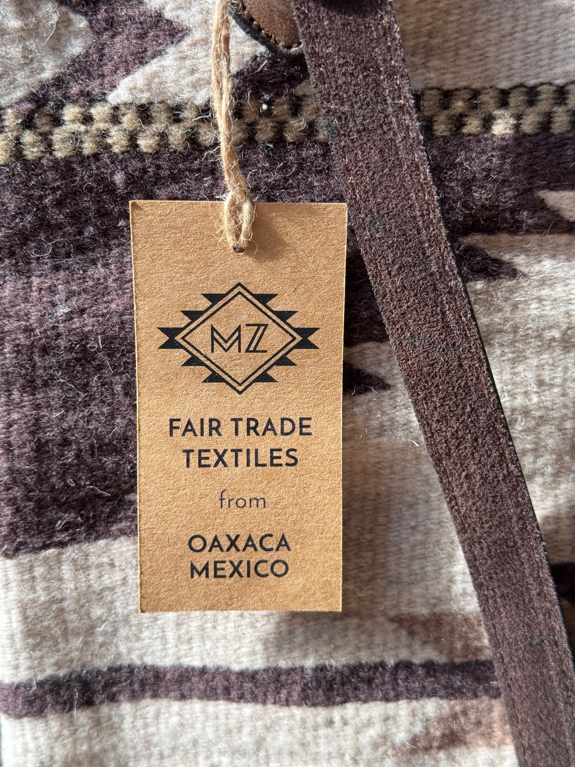The Tierra Bucket Tote blends timeless craftsmanship with earthy elegance. Featuring a traditional Zapotec diamond and arrow pattern, this artisan-made tote showcases a warm palette of eggplant, rich chocolate brown, dusty mauve, and cream—perfect for year-round styling.