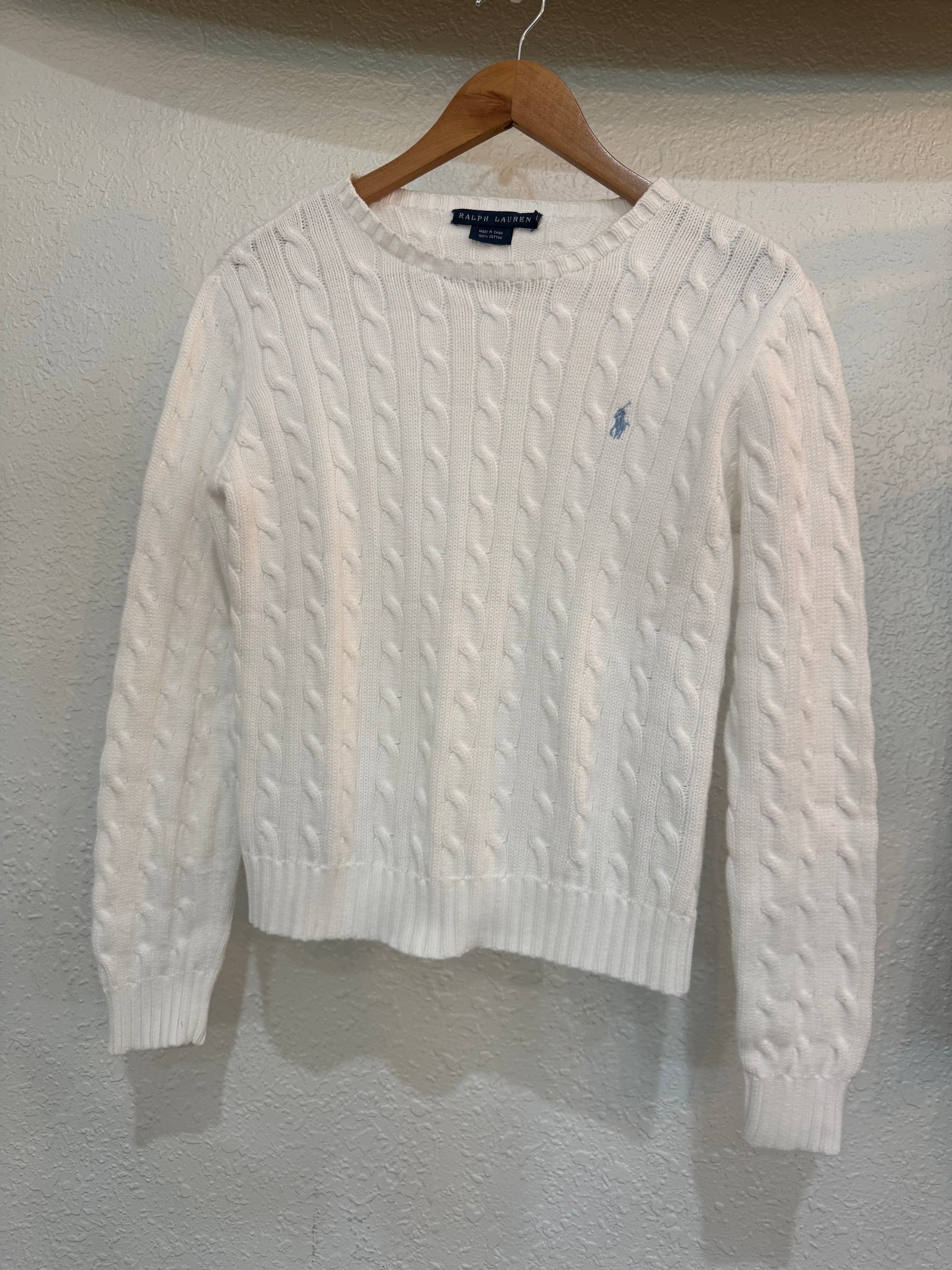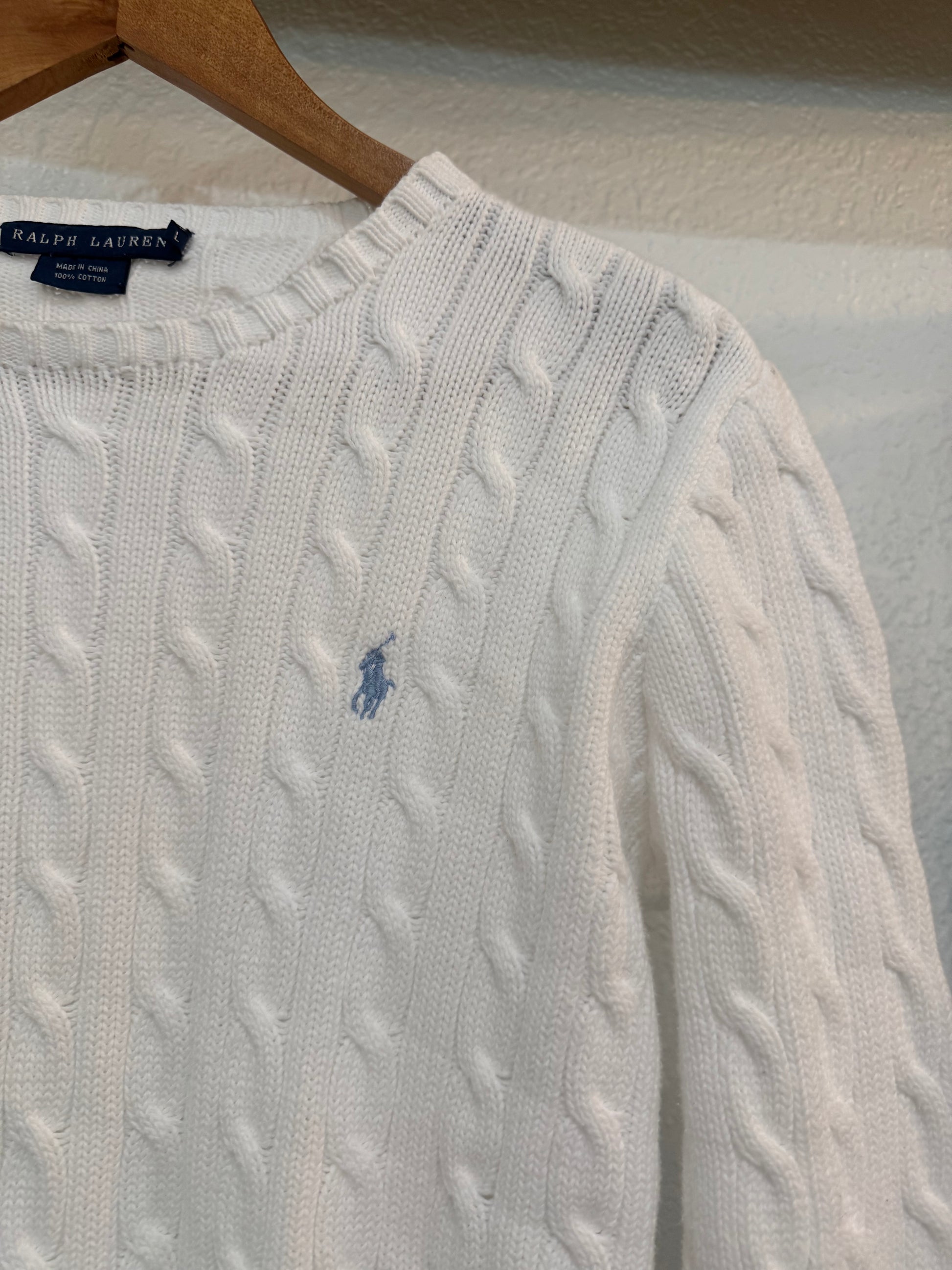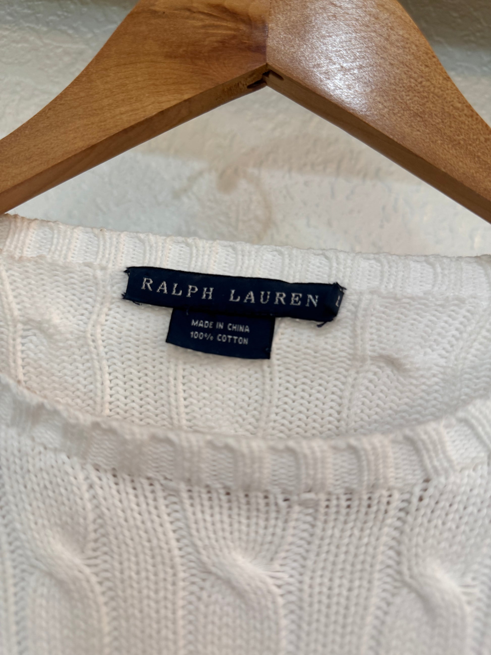 Product Title: Pre-Loved Ralph Lauren White Cable Knit Sweater – Size Large
