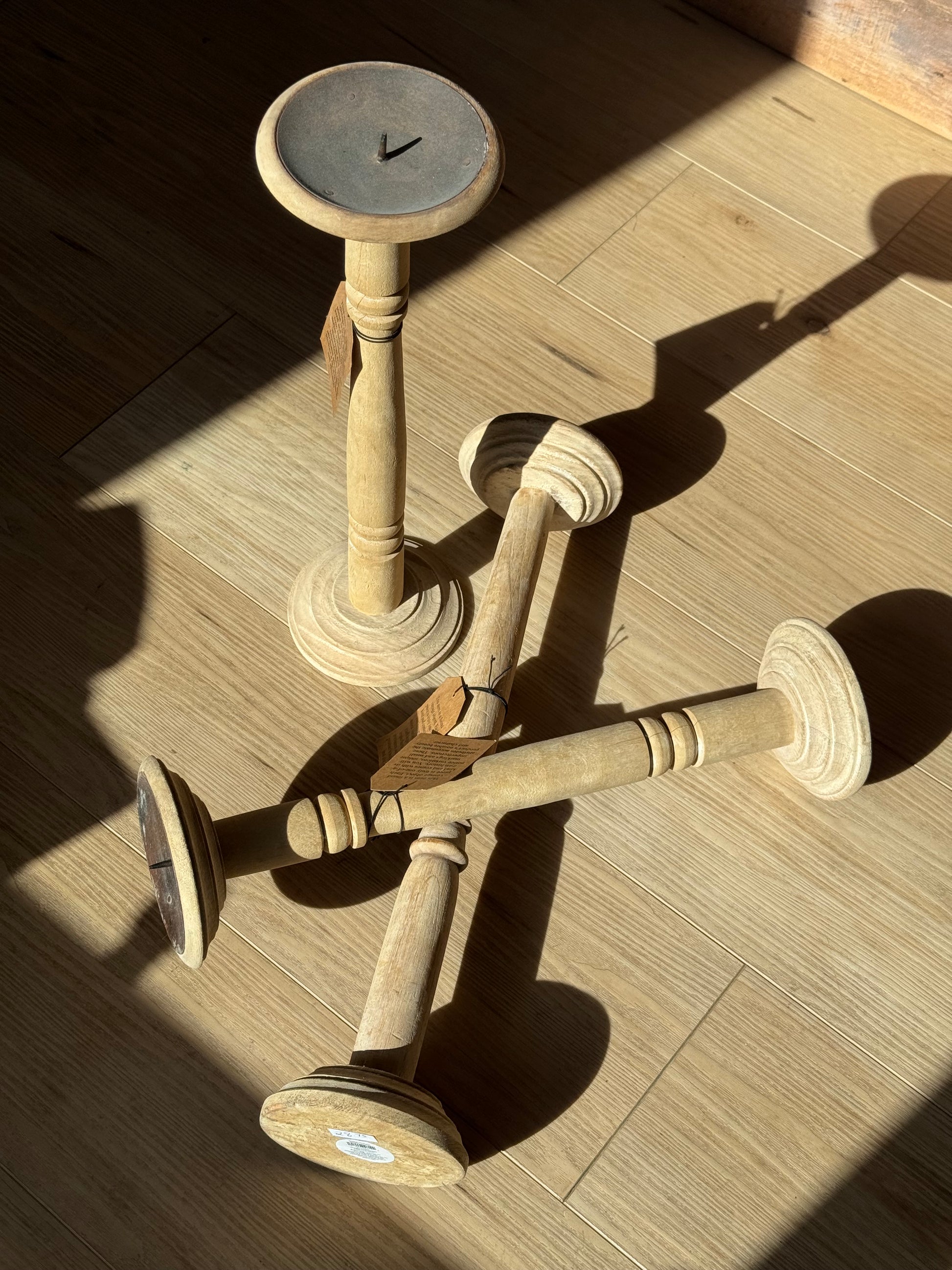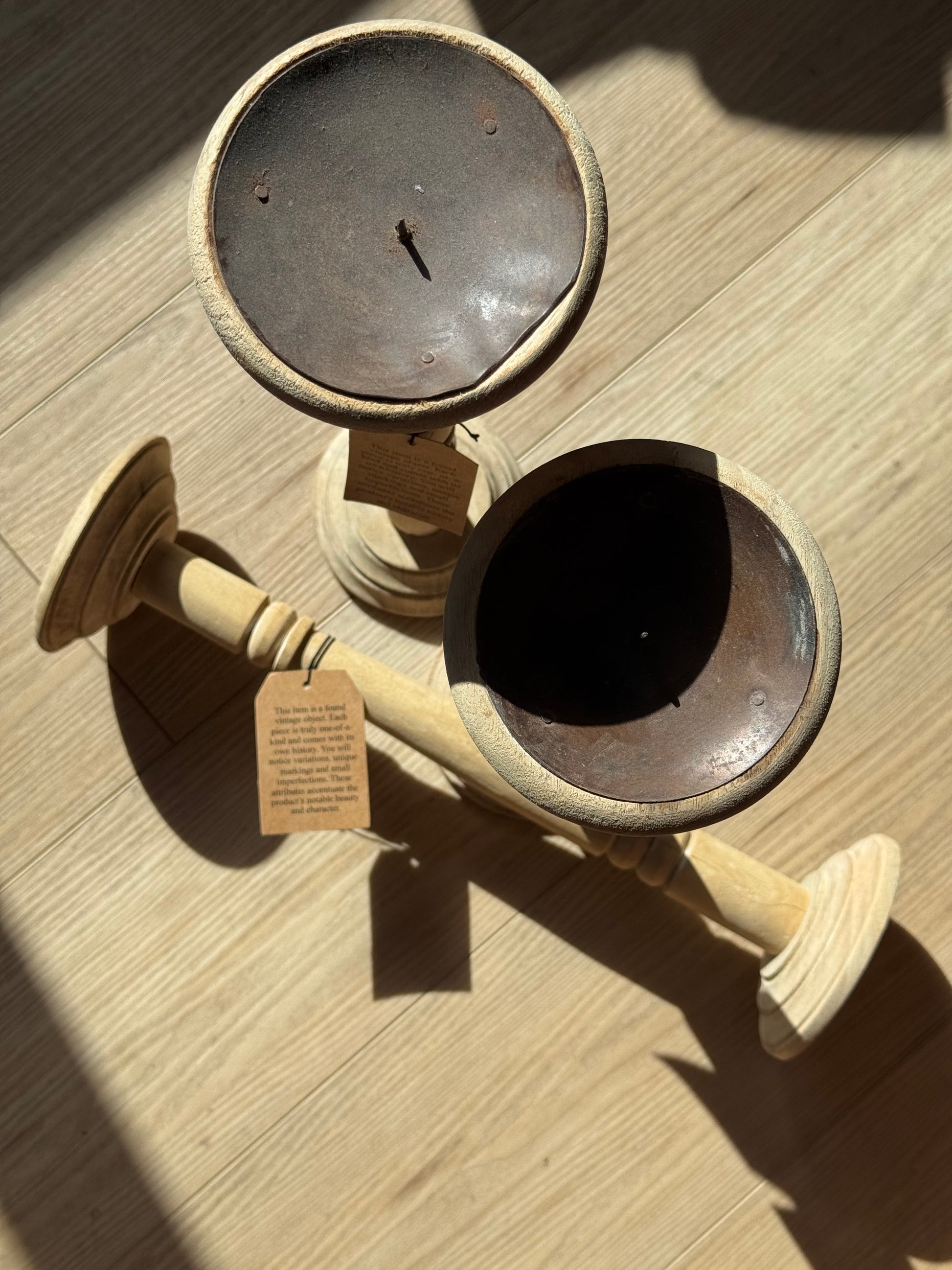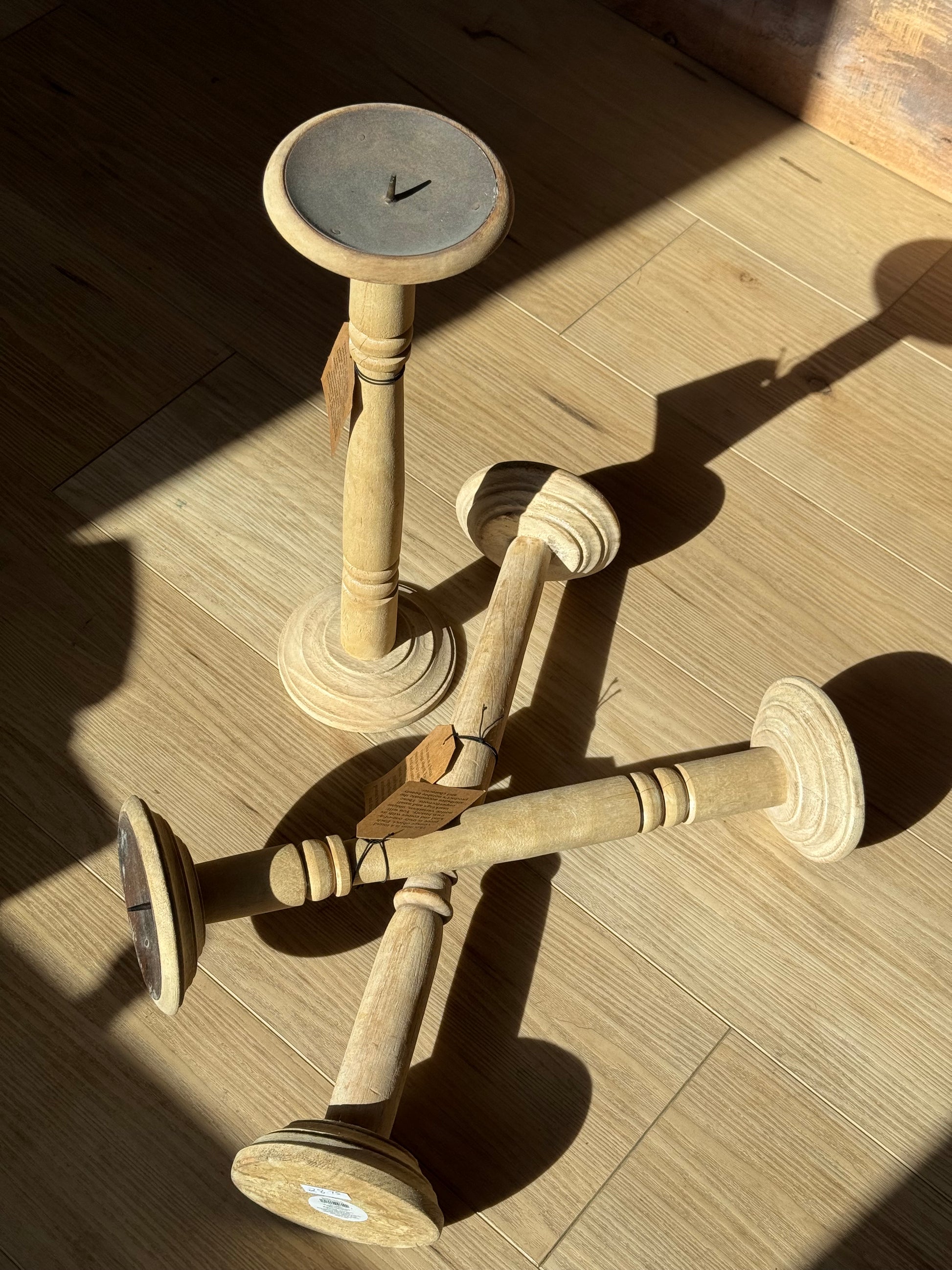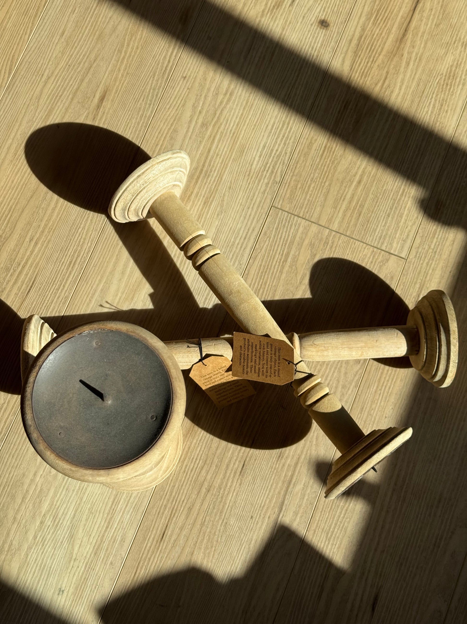 Elevate your space with this curated set of 3 found wood candle holders, each uniquely crafted from vintage materials. No two are alike—each piece carries its own story, complete with natural imperfections, patina, and wear that showcase its age and character.