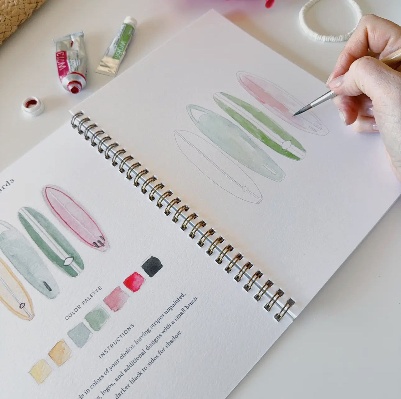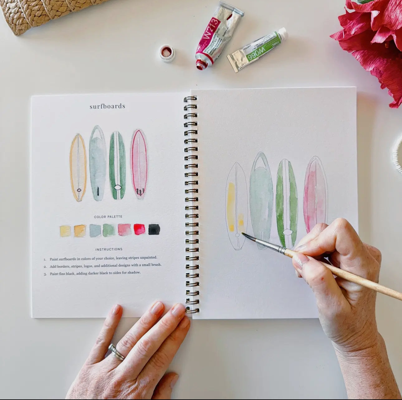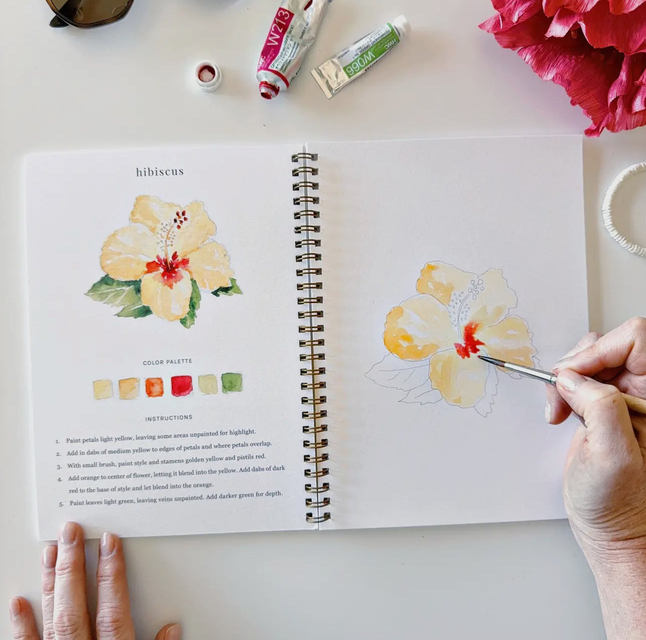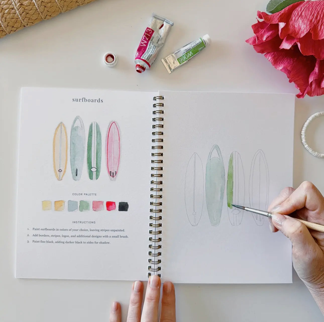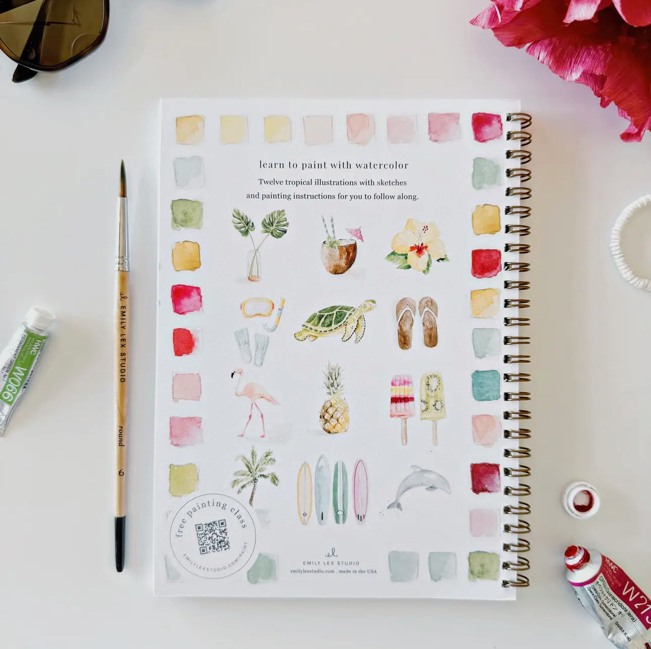 Bring a splash of sunshine to your creativity with this Tropical Watercolor Workbook by Emily Lex Studio. Featuring 12 vibrant tropical illustrations—from pineapples and palm trees to flamingos and surfboards—this workbook includes easy-to-follow sketches, color palettes, and step-by-step instructions for each design.