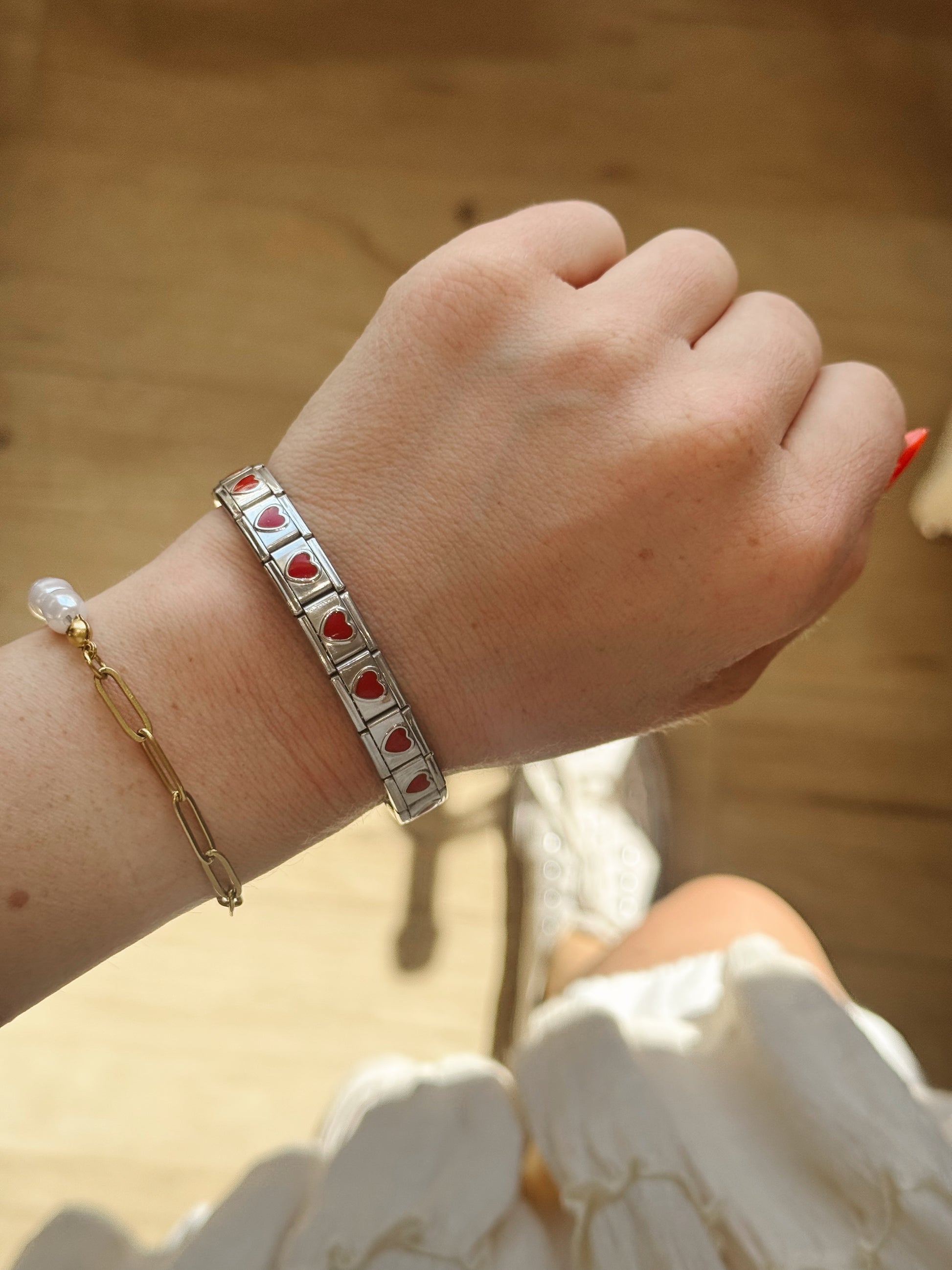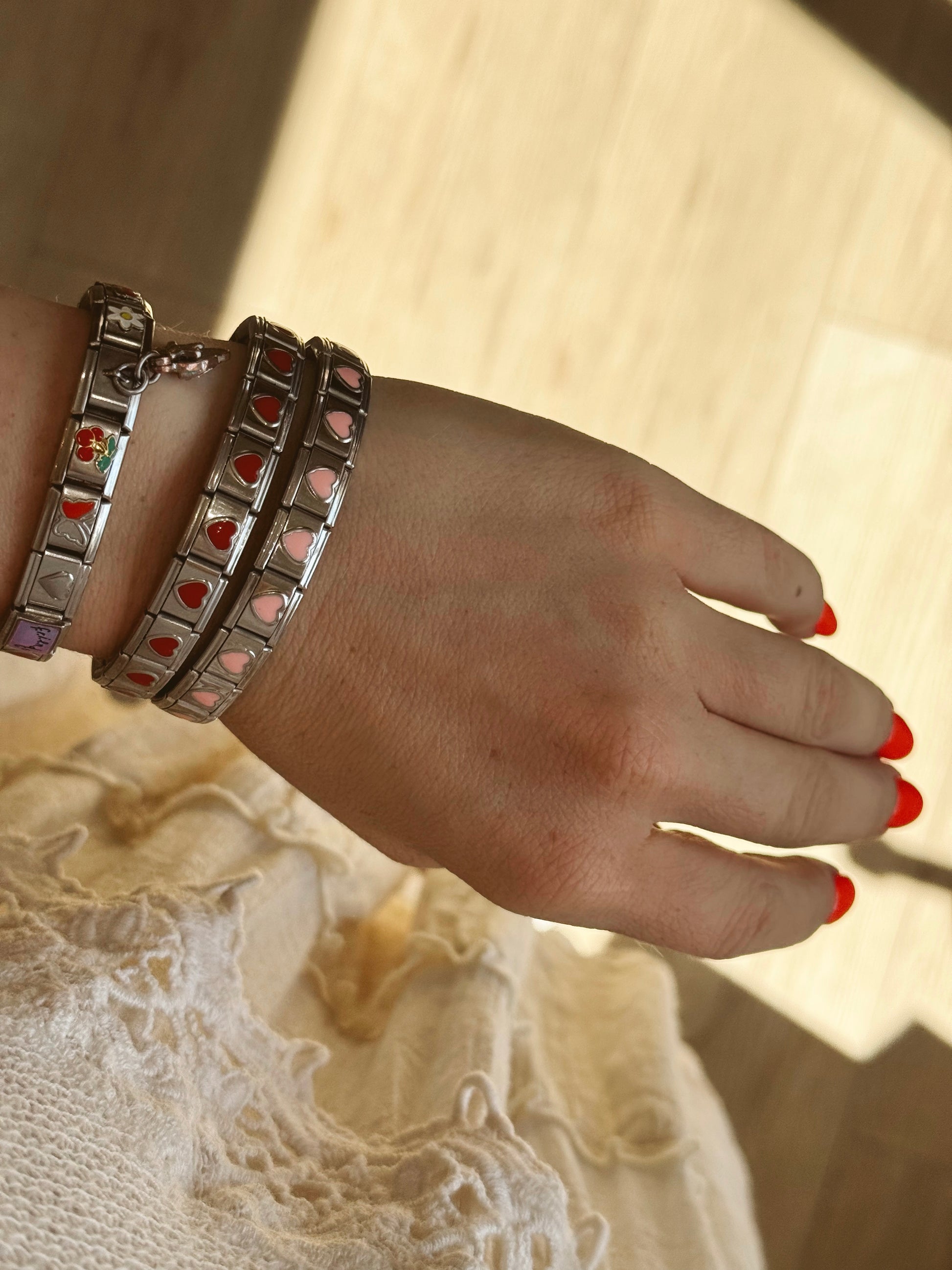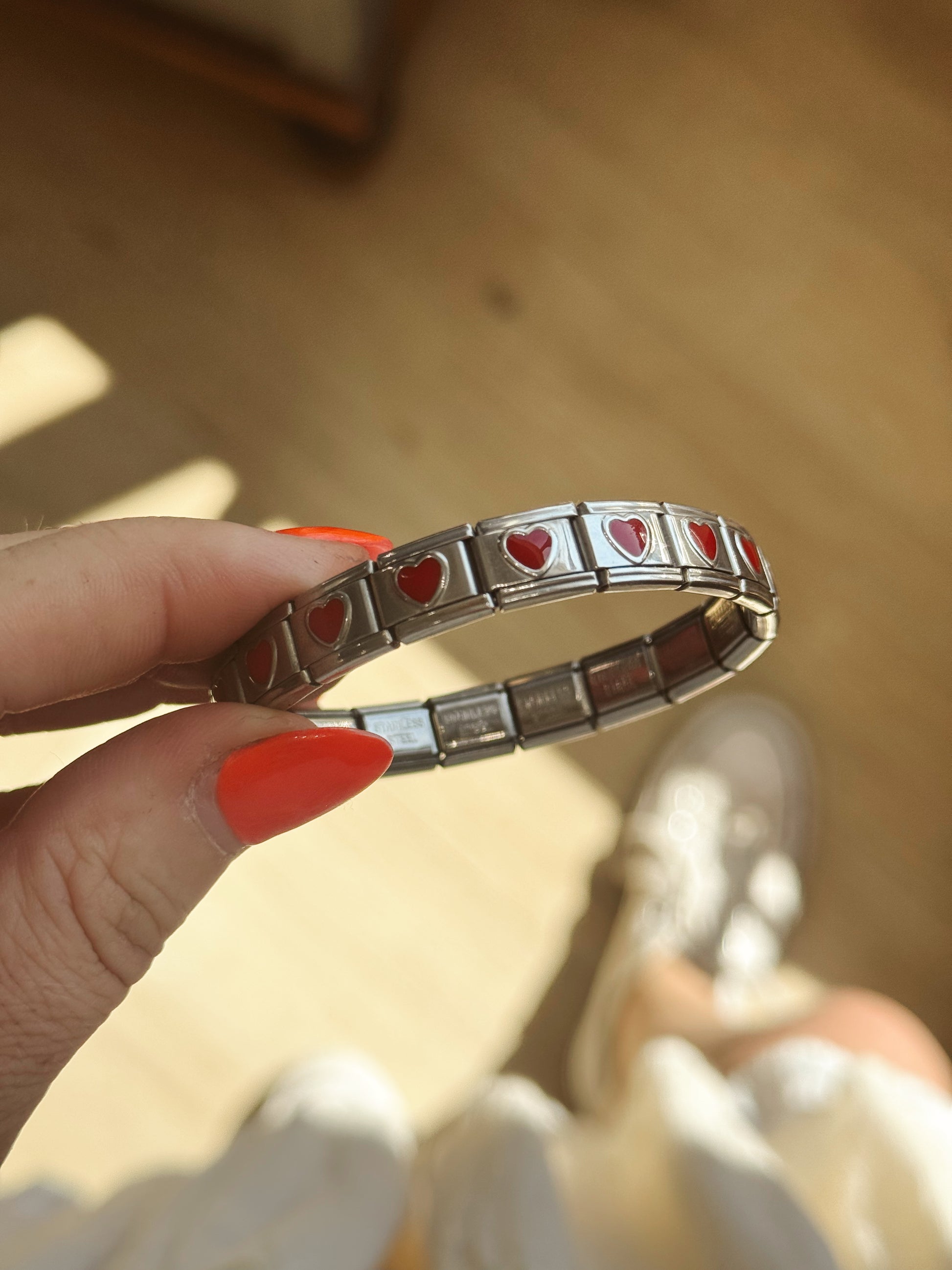 The ultimate throwback is here 💘 This classic Y2K Italian charm bracelet features a full row of red enamel hearts on stainless steel links, giving major nostalgia in the best way. Stack it, gift it, or wear it solo for that effortlessly cool vibe. Stretch-style for a comfy fit.