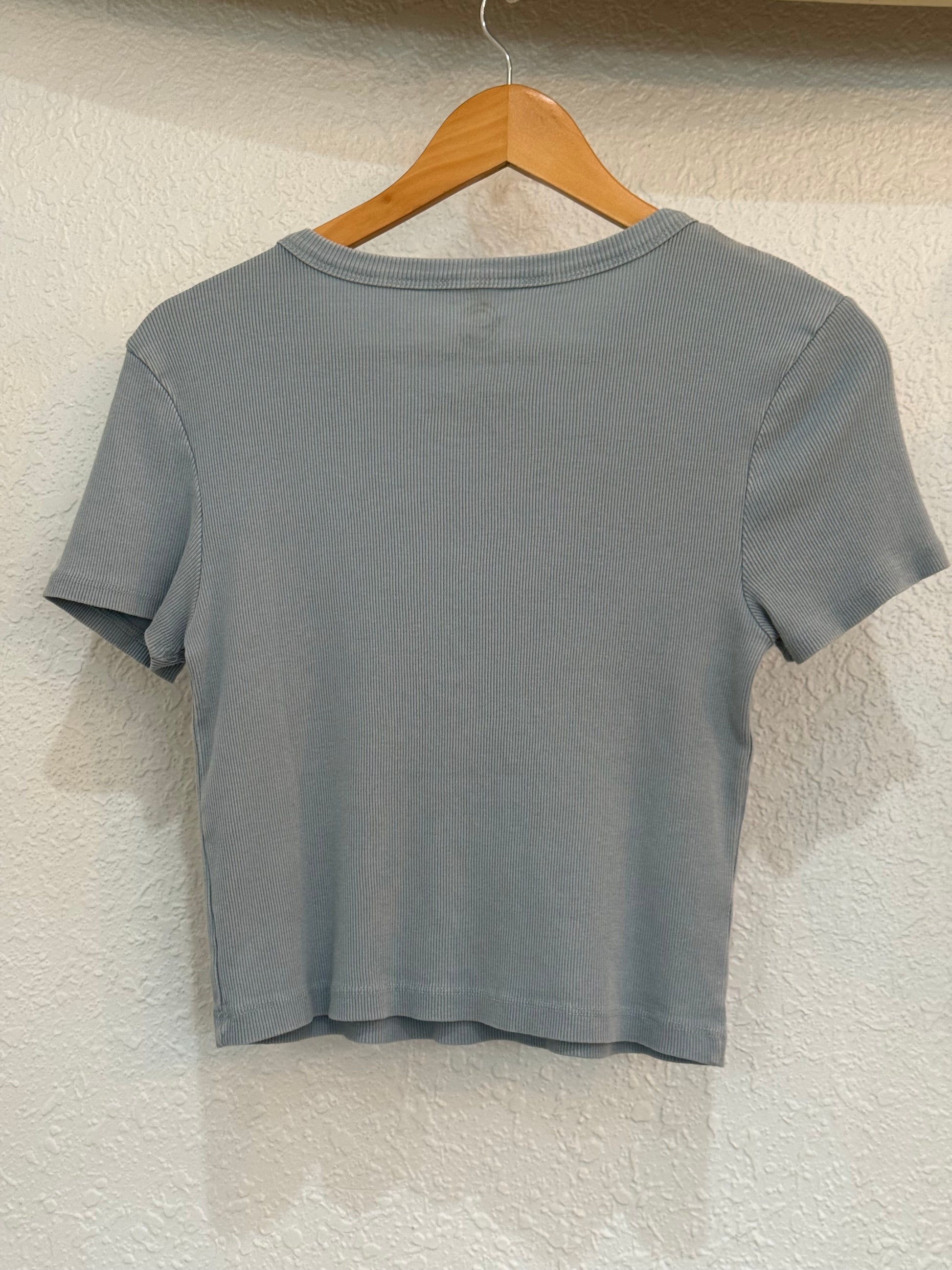 Playful, bold, and made for main character moments — this blue graphic tee features a cheeky “You Just Got Served” martini glass design with Los Angeles lettering beneath. A fun pop of personality to pair with denim, cargos, or layered under a blazer for an effortless mix of casual and cool.