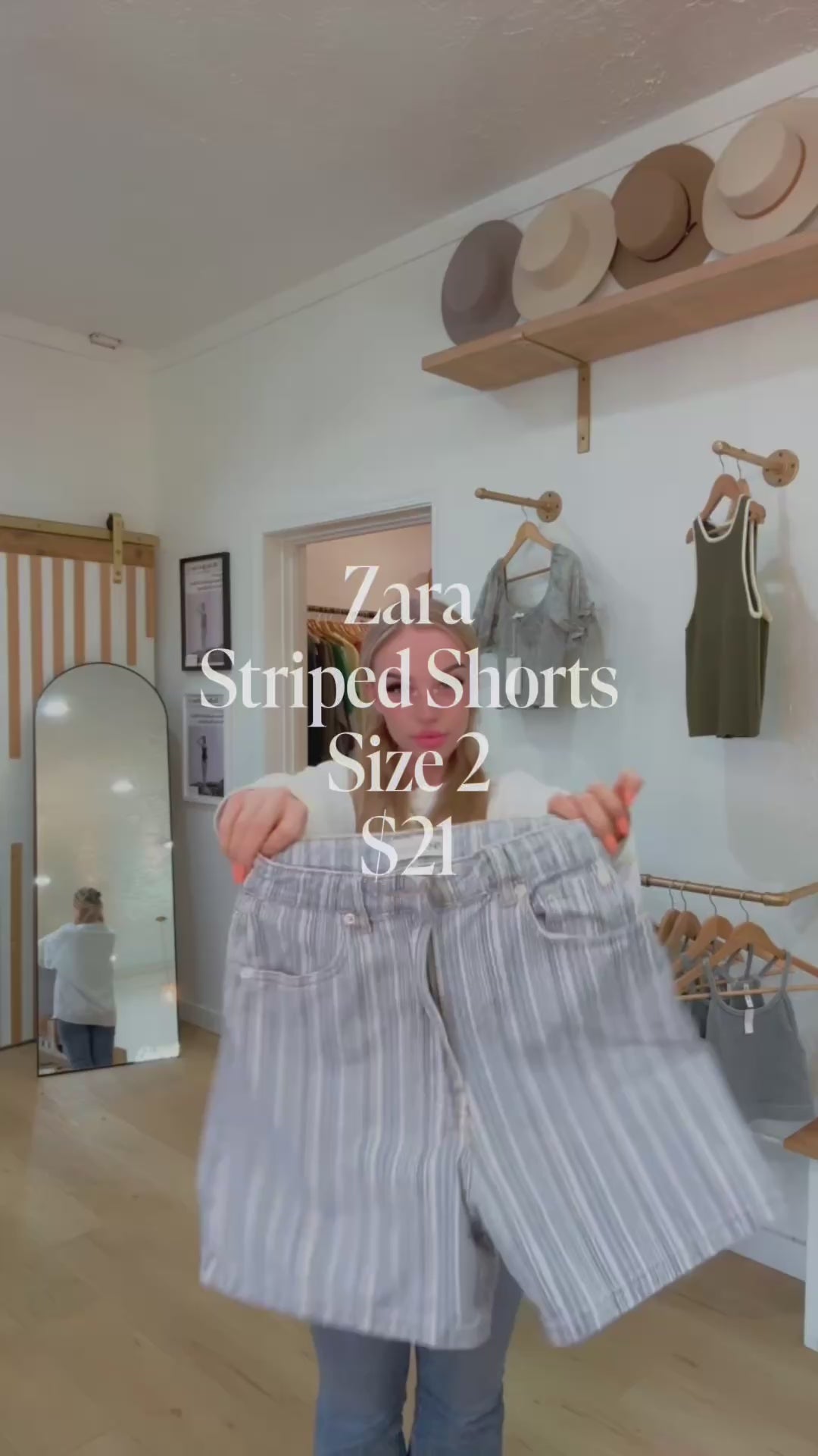Classic with a coastal twist, these blue and white striped shorts from Zara are the perfect piece for warm-weather styling. They feature a soft, structured cotton blend with a high-rise fit and a timeless pinstripe pattern that brings beachy charm to your closet.